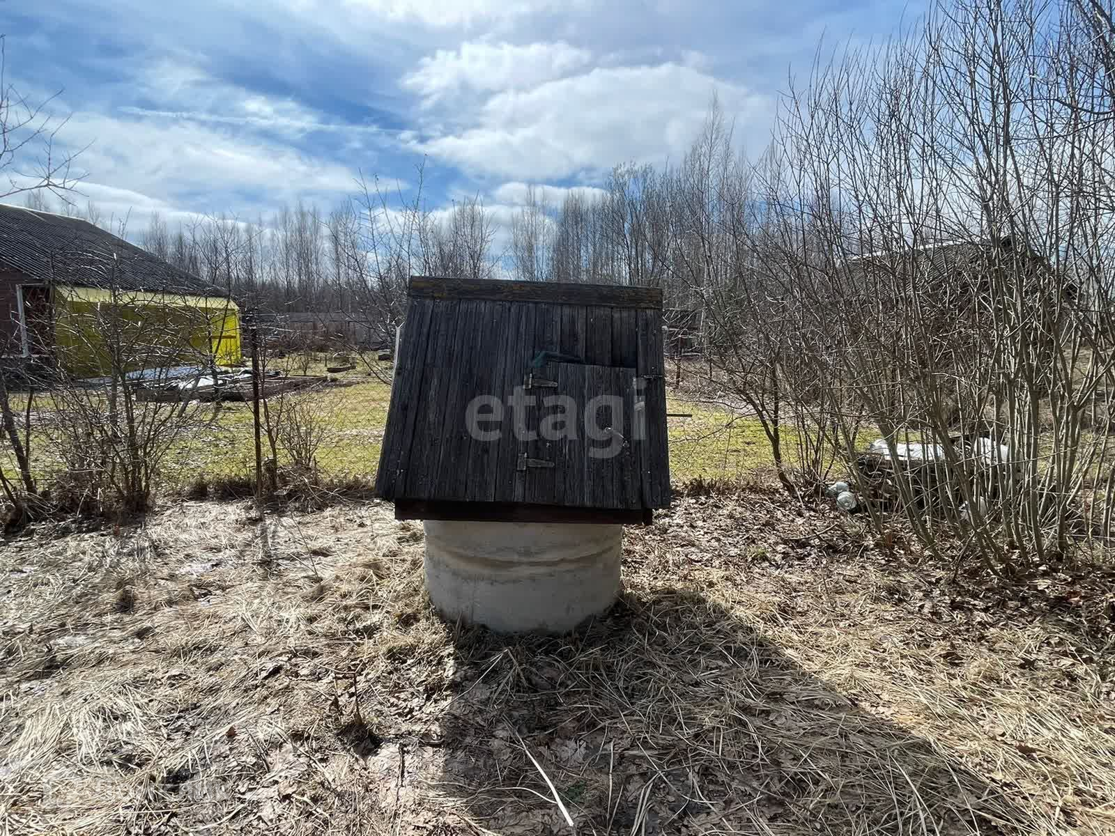 На участке площадью 8 соток находится небольшой домик, колодец с чистой водой. Яблони и кусты смородины, растущие по периметру участка, придают даче особый шарм.