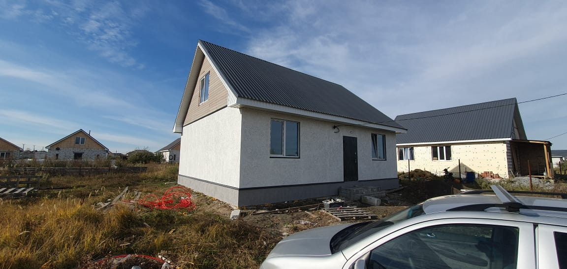 В стоимость дома входит все коммуникации (скважина, септик, отопление газовое, водоотведение), пред чистовая отделка, теплый пол, разводка электрики, перекрытие деревянное с утеплением 200 мм., натяжной потолок.