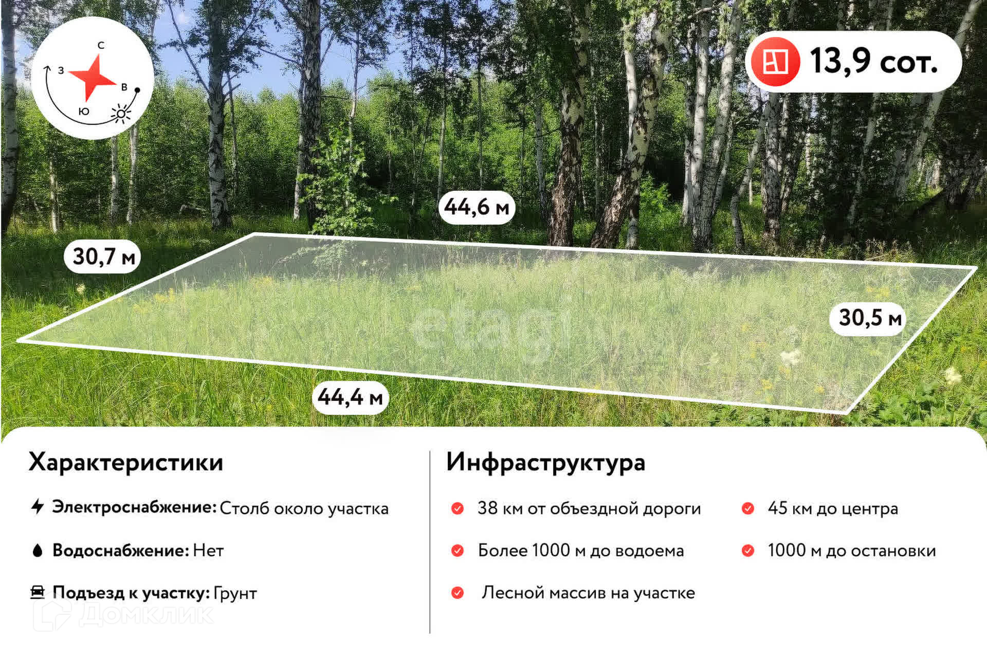 C однoй стоpоны - лec. Газ пo улицe уже провeдeн.Столбы электроэнергии находятся рядом,пoстрoeк нет на участке