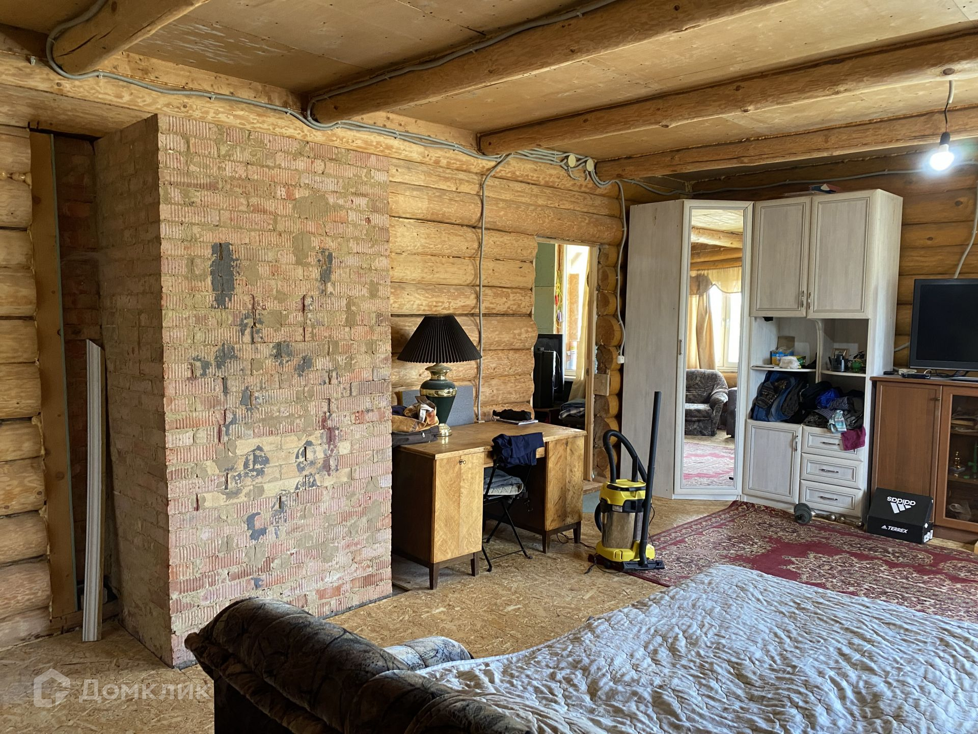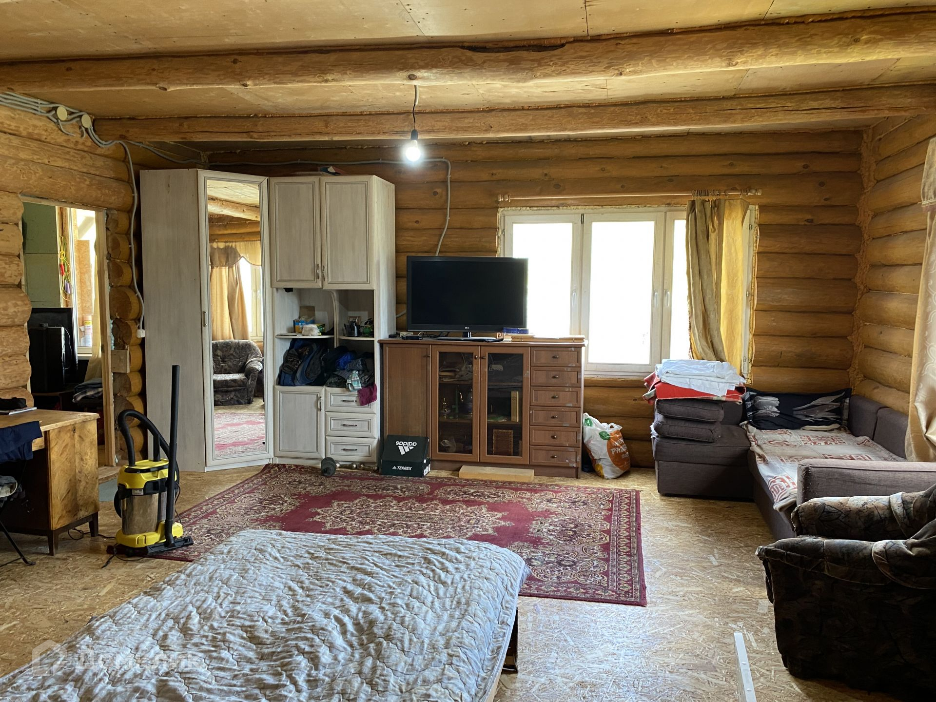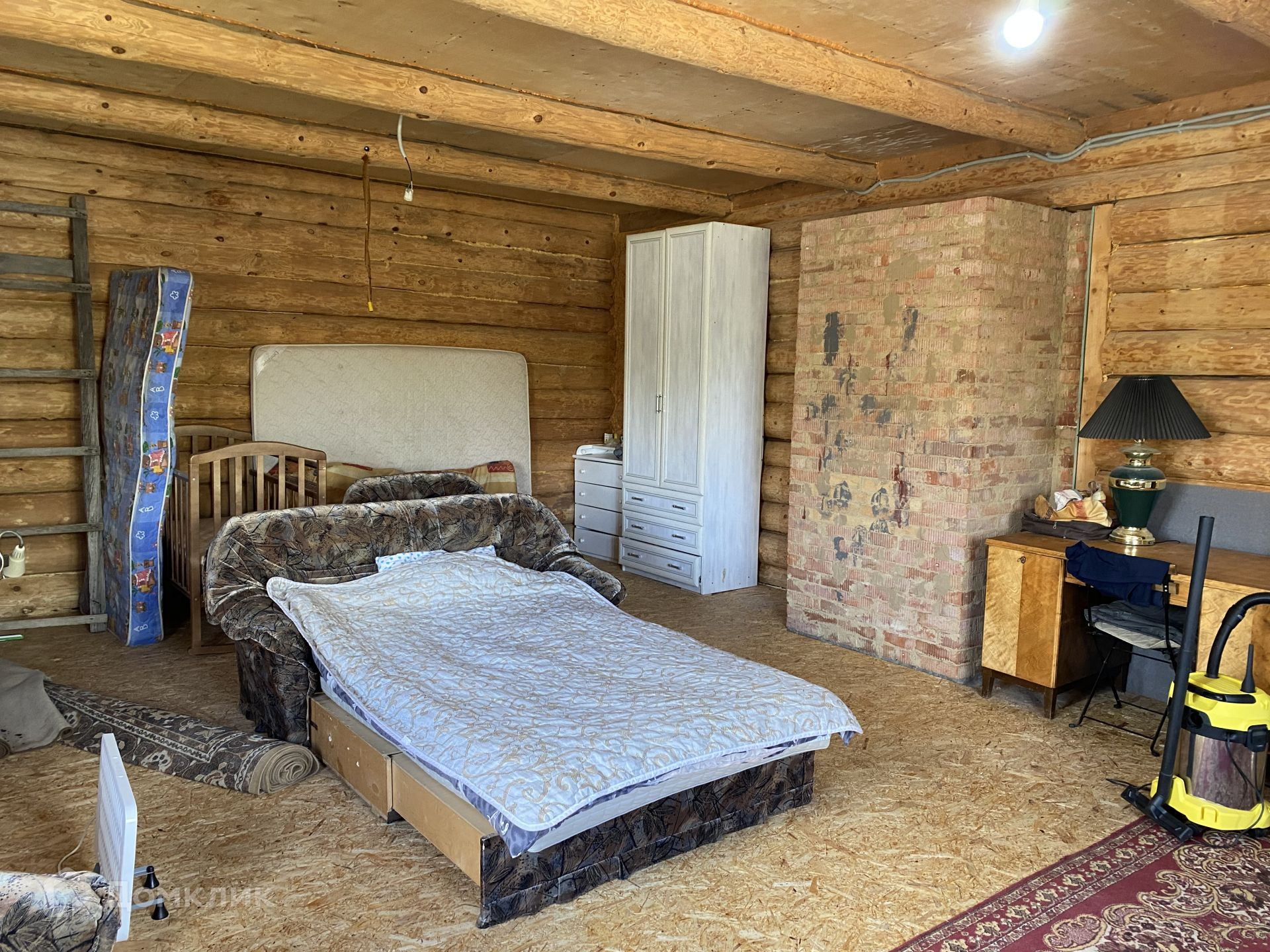 В доме одна большая комната - можно зонировать, кухня, санузел, кладовка. Второй этаж не благоустроен.