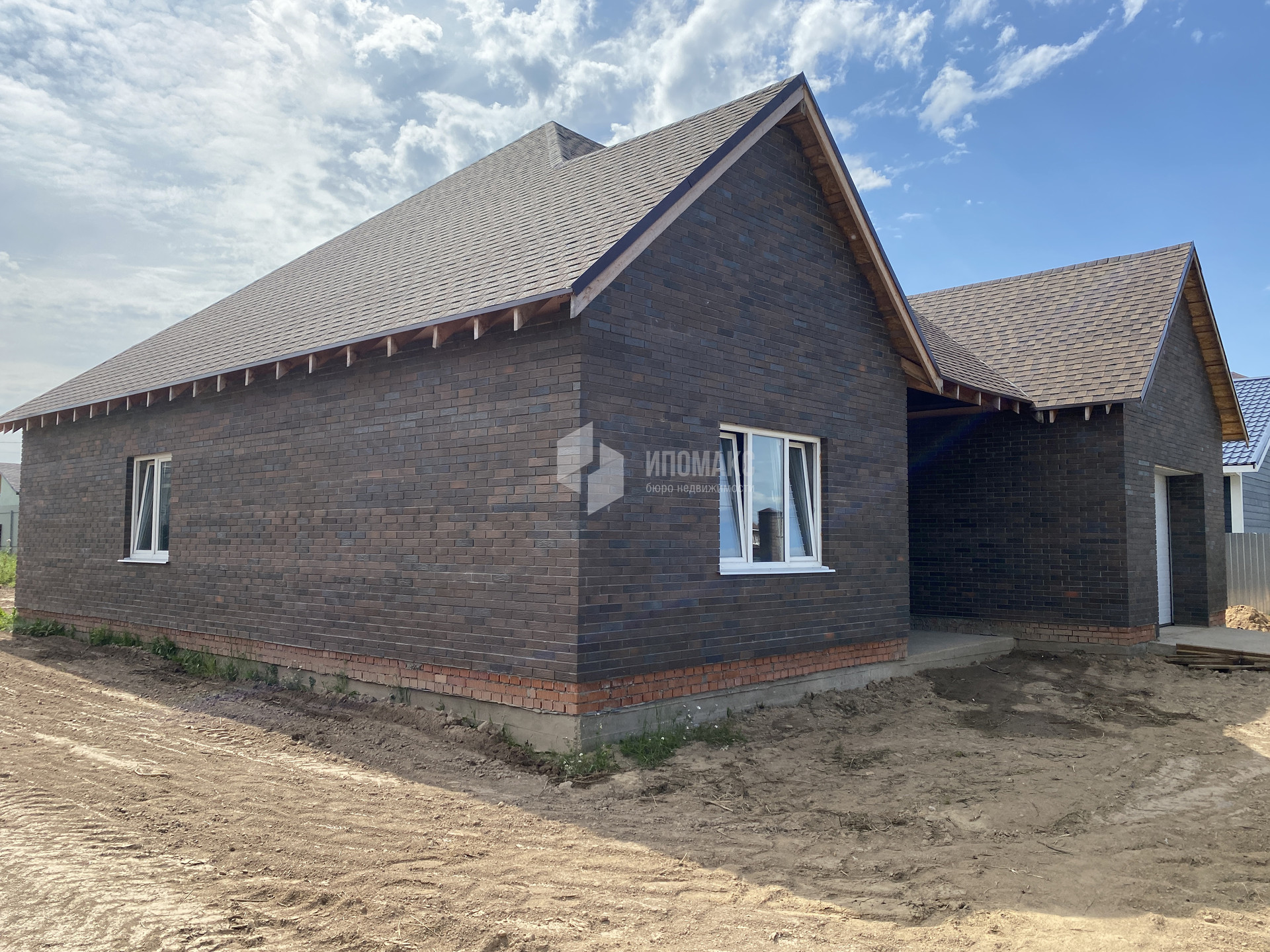 Фундамент-монолитная плита, выполнен из газобетонных блоков, хорошие двухкамерные стеклопакеты, крыша-гибкая черепица, внешняя облицовка декоративный клинкерный кирпич. Толщина стен впечатляет, в таком доме всегда будет тепло и комфортно.