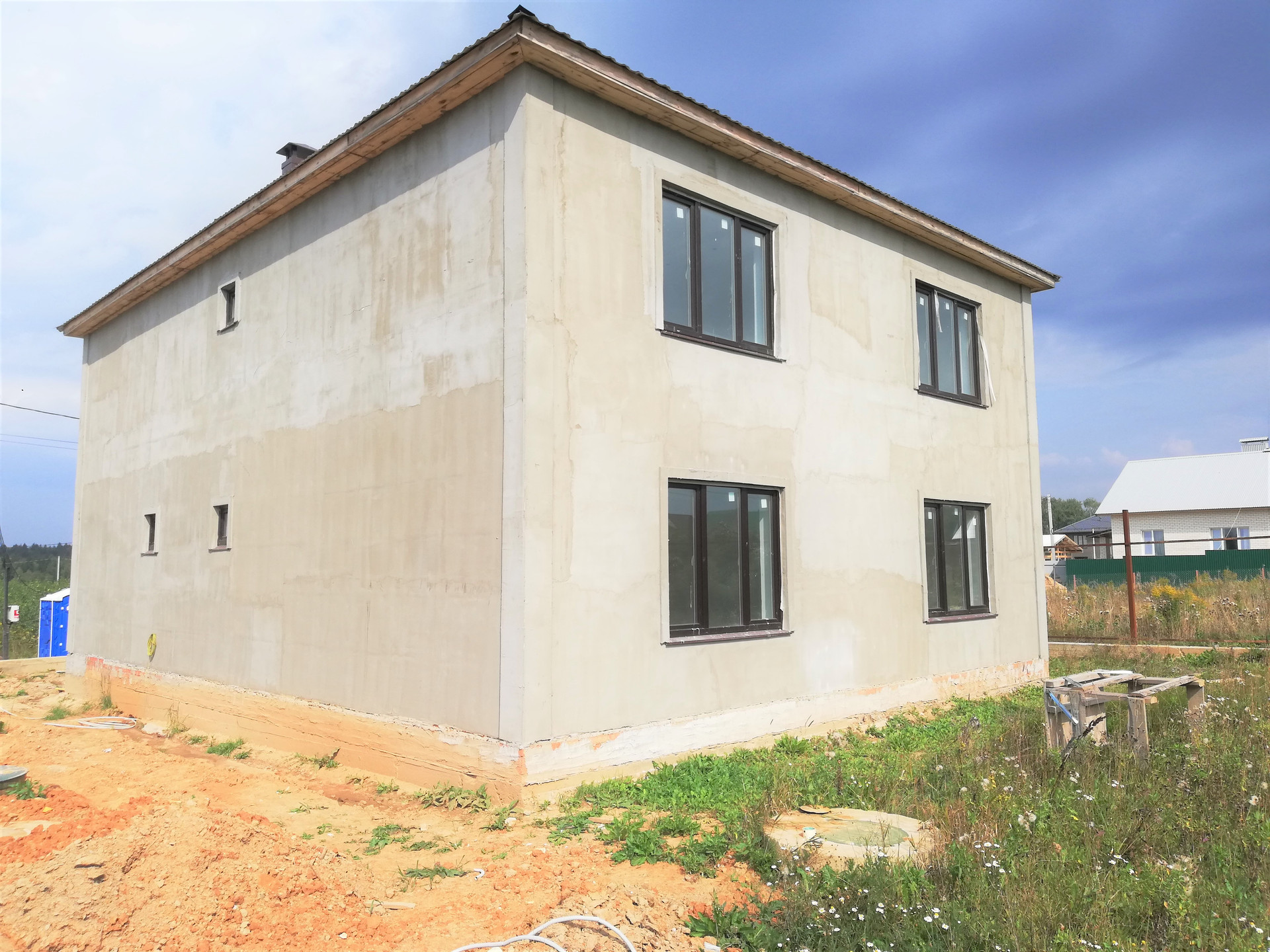 Продаётся новый дом для постоянного проживания в КП Акиньшино, Москва, НАО. ИЖС, прописка Москва. Земля и дом в собственности. Полностью готов к финишной отделке. Возведены и выровнены стены под финишную отделку, разведена электрика по проекту, выполнена стяжка пола, установлен тёплый водяной пол, установлены потолки. Планировка:1-ый этаж 136 м2,( большой холл, гостиная 38кв.м, кухня 16,5кв.м,спальня 16,5 кв.м, сан.узел 8,5 кв.м) 2-ой этаж 136м2, (четыре спальни 28кв.м, 28 кв.м, 17кв.м и 16,5 кв.м, сан.узел 7,5 кв.м, постирочная , холл), Дополнительно к основной площади-массандра 50 кв.м.+110м тех.помещение. Высота потолков : 1 этаж 3,15м, 2 этаж 2,9м, массандра 2,4м. Стены пеноблок, утеплитель Технониколь. Окна профиль 75 мм. Фундамент ленточный, на буронабивных сваях. Электричество 15кВт, скважина 80м, септик Евролос.Предусмотрено все, что нужно для комфортного проживания.Удобная транспортная доступность, метро Саларьево 10-15мин транспортом В 2025 году откроется линия скоростного трамвая до метро Саларьево.