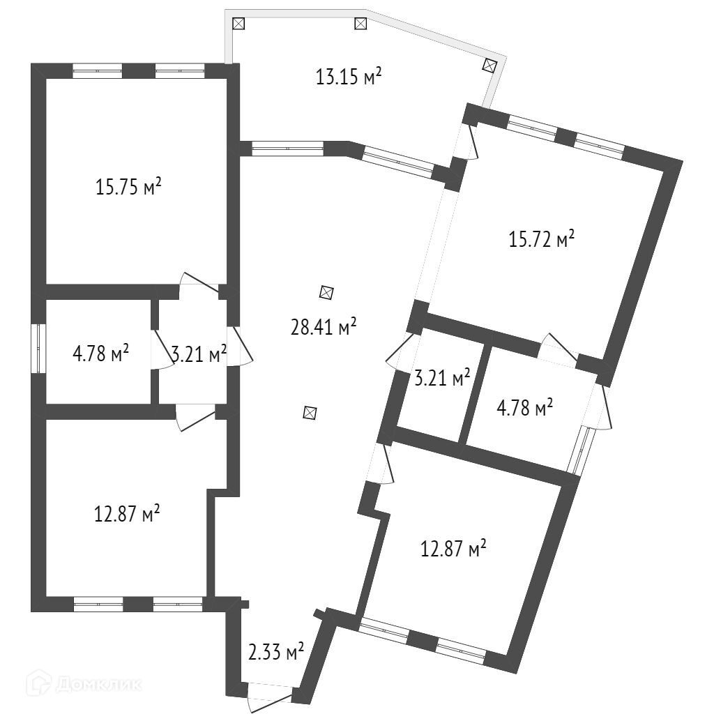 Просторная кухня-гостиная 44 м2, три спальных комнаты (13, 15 и 13 м2), два санузла, котельная, терраса.