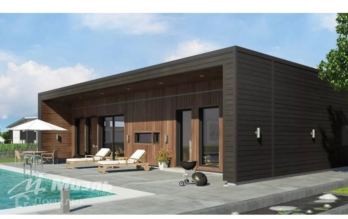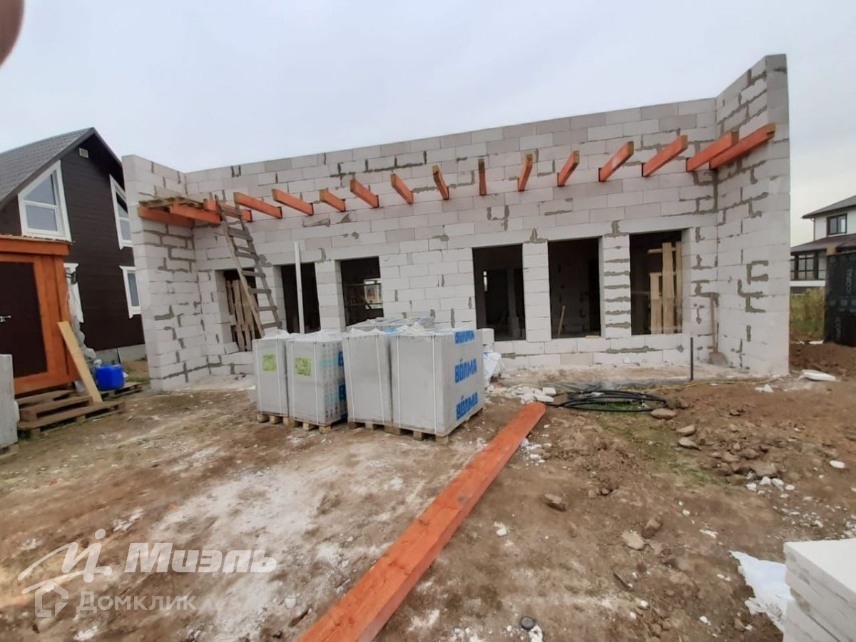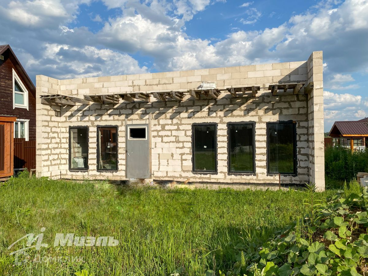 Просторный современный одноэтажный дом с коммуникациями в стиле хай-тек под отделку в центре обжитого коттеджного  поселка! Дом расположен в современном КП Зима-Лето в удобной доступности от Москвы. Общая площадь дома 110 кв.м. Проектом предусмотрена эксплуатируемая кровля, возможно увеличить этажность дома до двух полноценных этажей, т.к. дом возведен на монолитно-бетонной плите, весь процесс строительства зафиксирован. Дом ориентирован на титульную сторону участка, большие панорамные окна (трехкамерный стеклопакет Rexau) придают дому особый шарм и увеличивают освещенность. Высота потолков - 3,80. Фундамент плита ВШУ с коммуникациями, возможно дополнительное возведение второго этажа, черновая крыша. Участок ИЖС, предполагает парковочное место и патио-зону с озеленением.