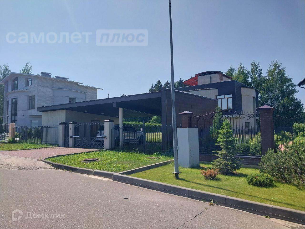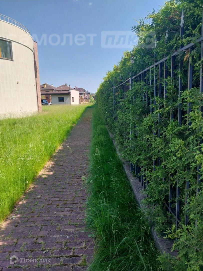 На участке проложены дорожки, газон, за домом - садовые кустарники, цветы и естественный перелесок (несколько берез, сосен, ёлок).