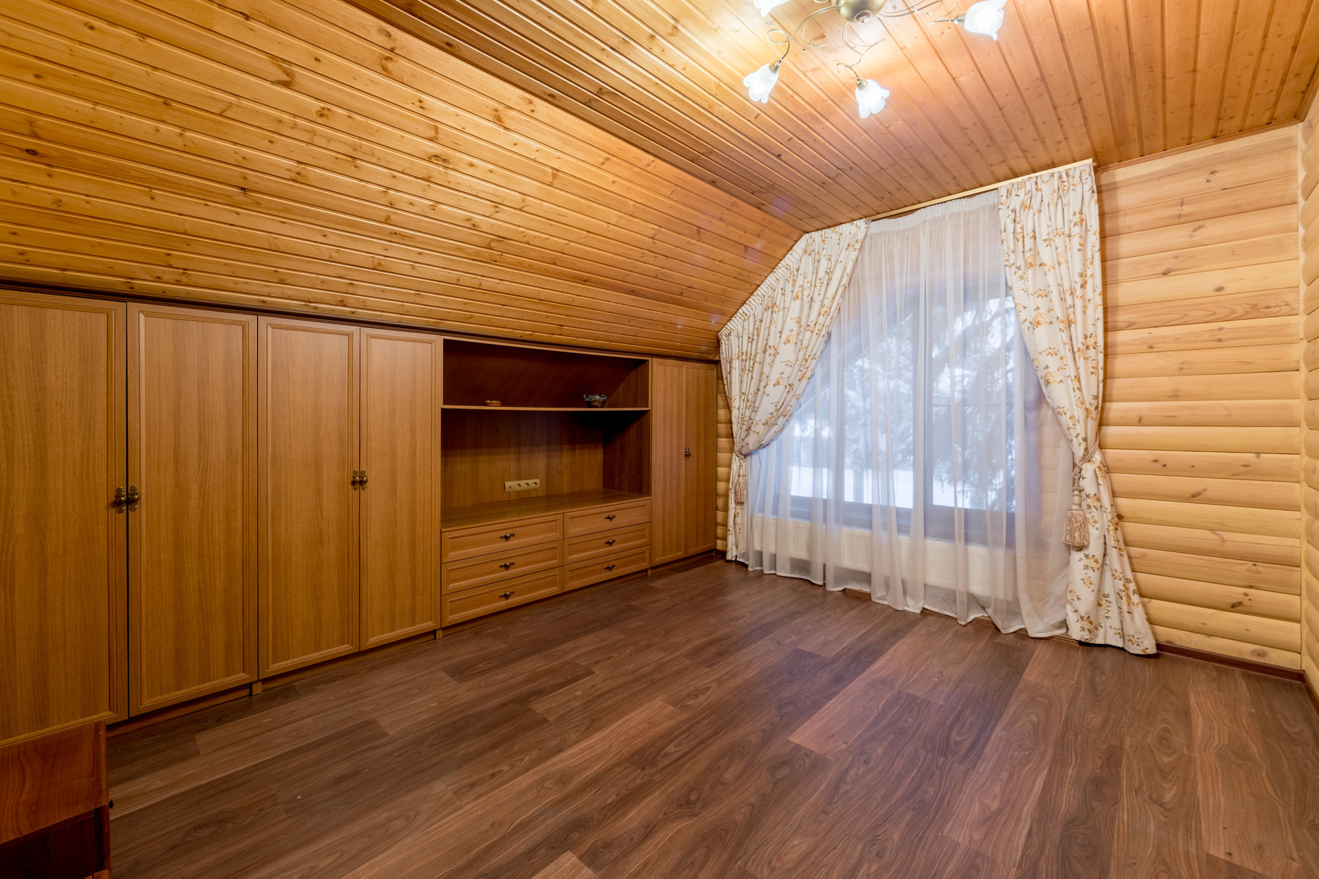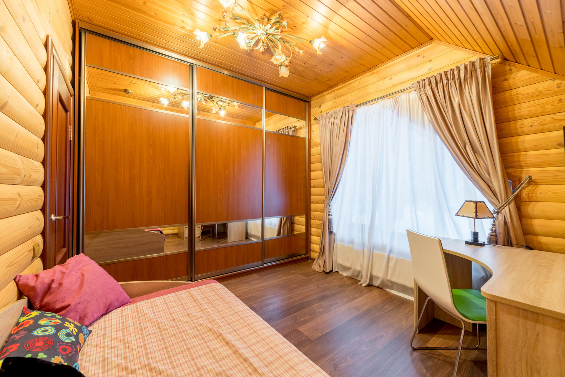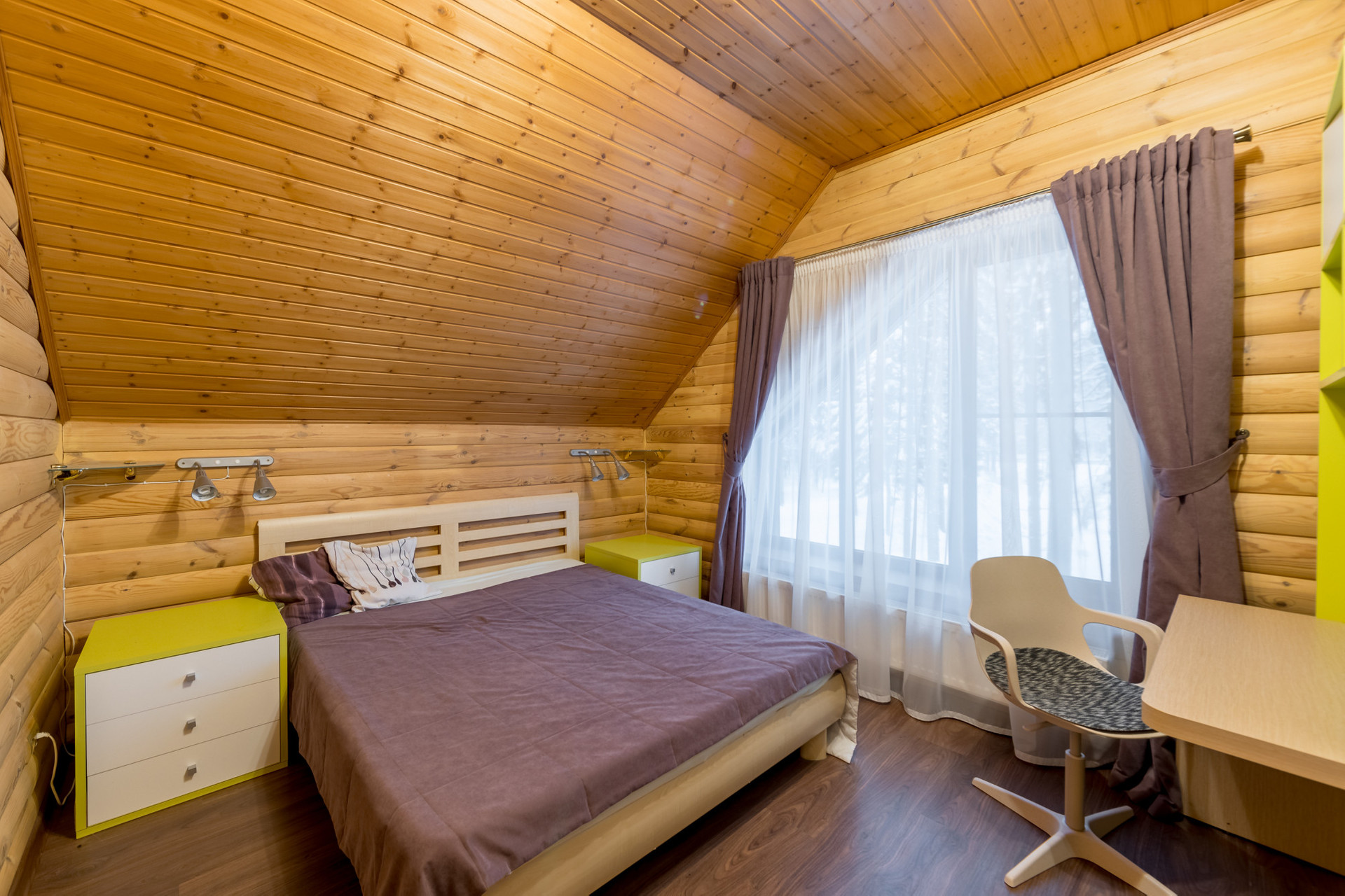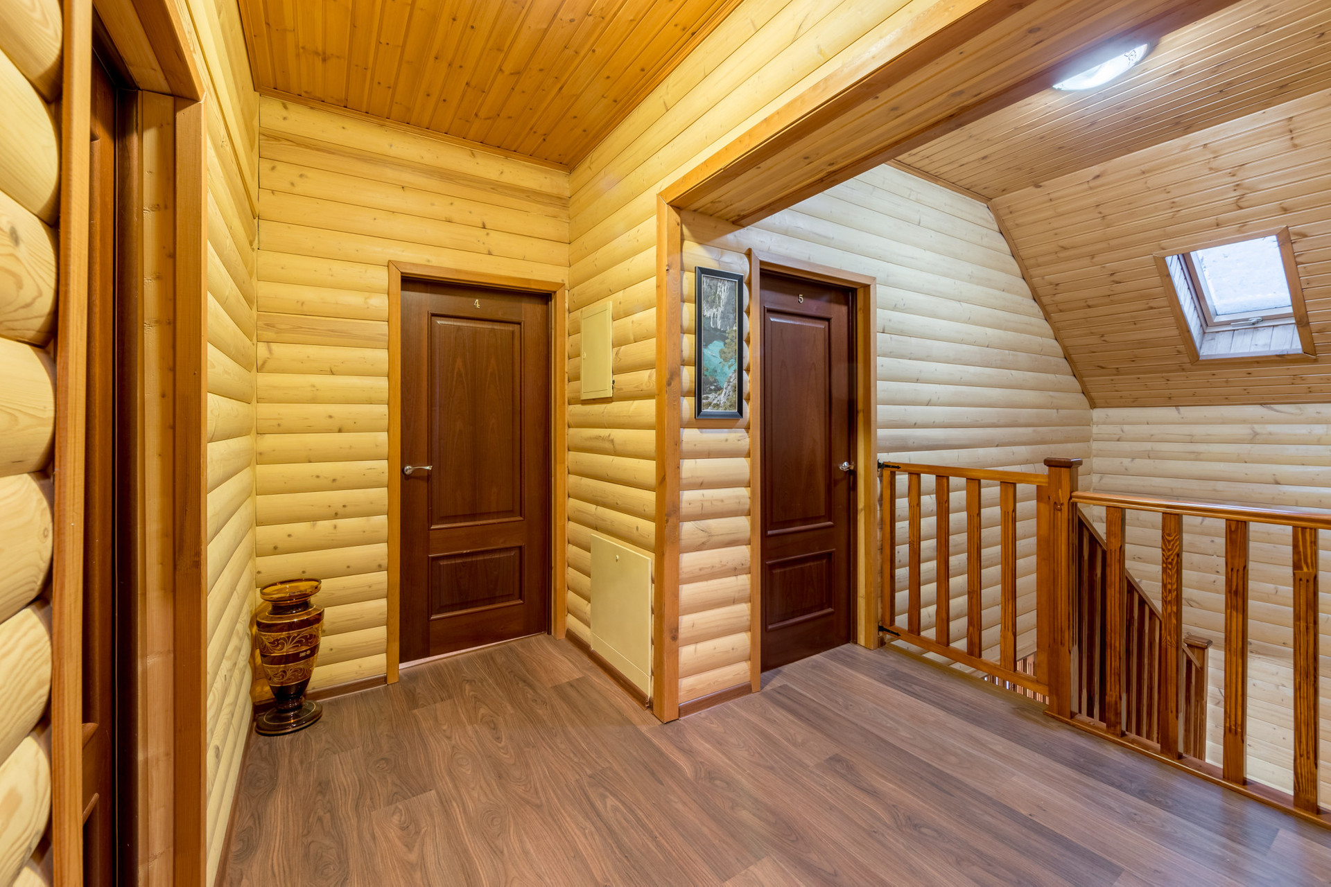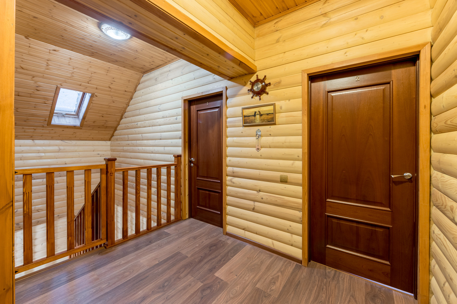 Второй этаж: просторный холл, отдельная гостиная, две спальные комнаты, одна из которых оснащена балконом, рабочий кабинет с видом на лесной массив и озеро, ванная комната с ванной. Всего на втором этаже четыре изолированные комнаты.