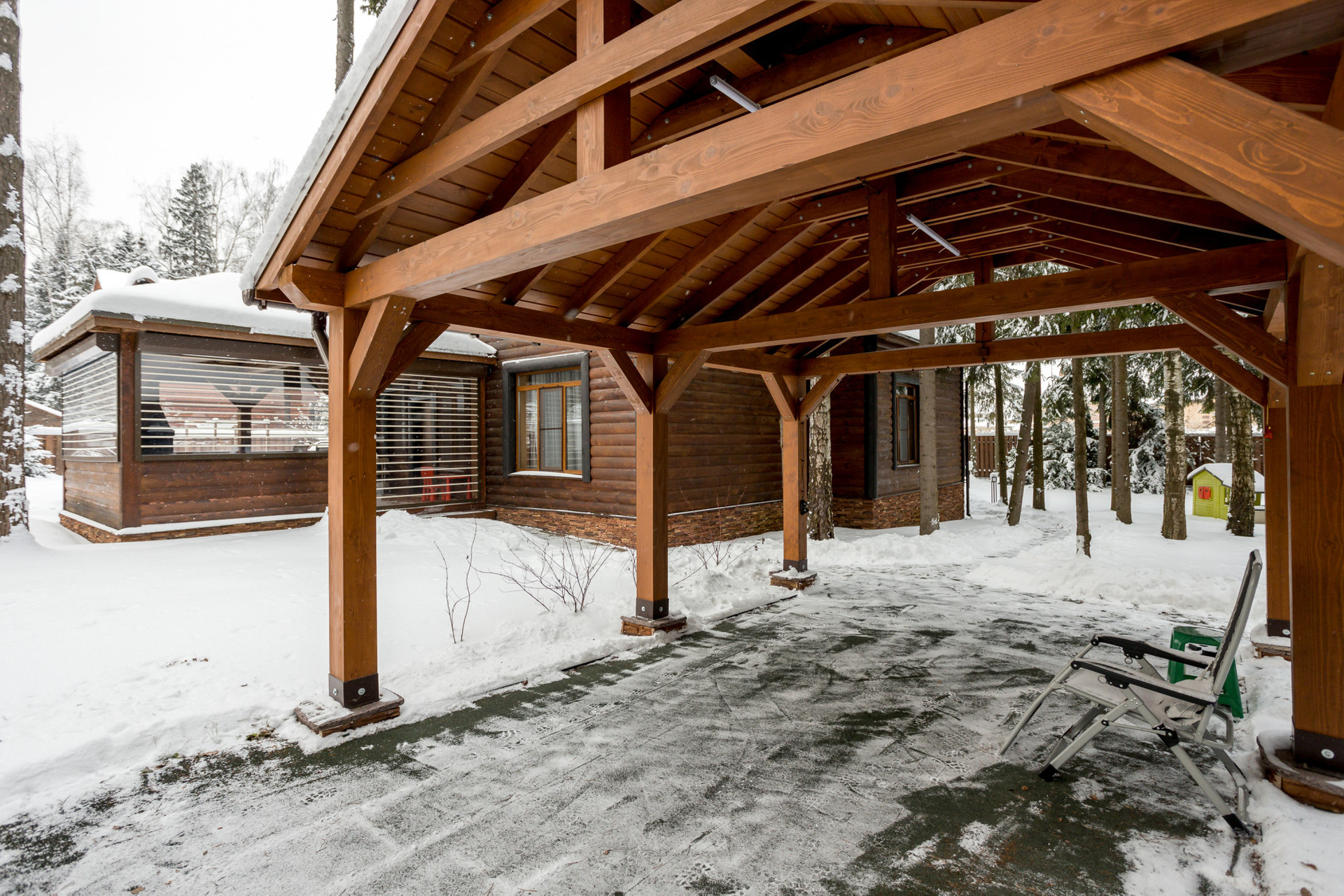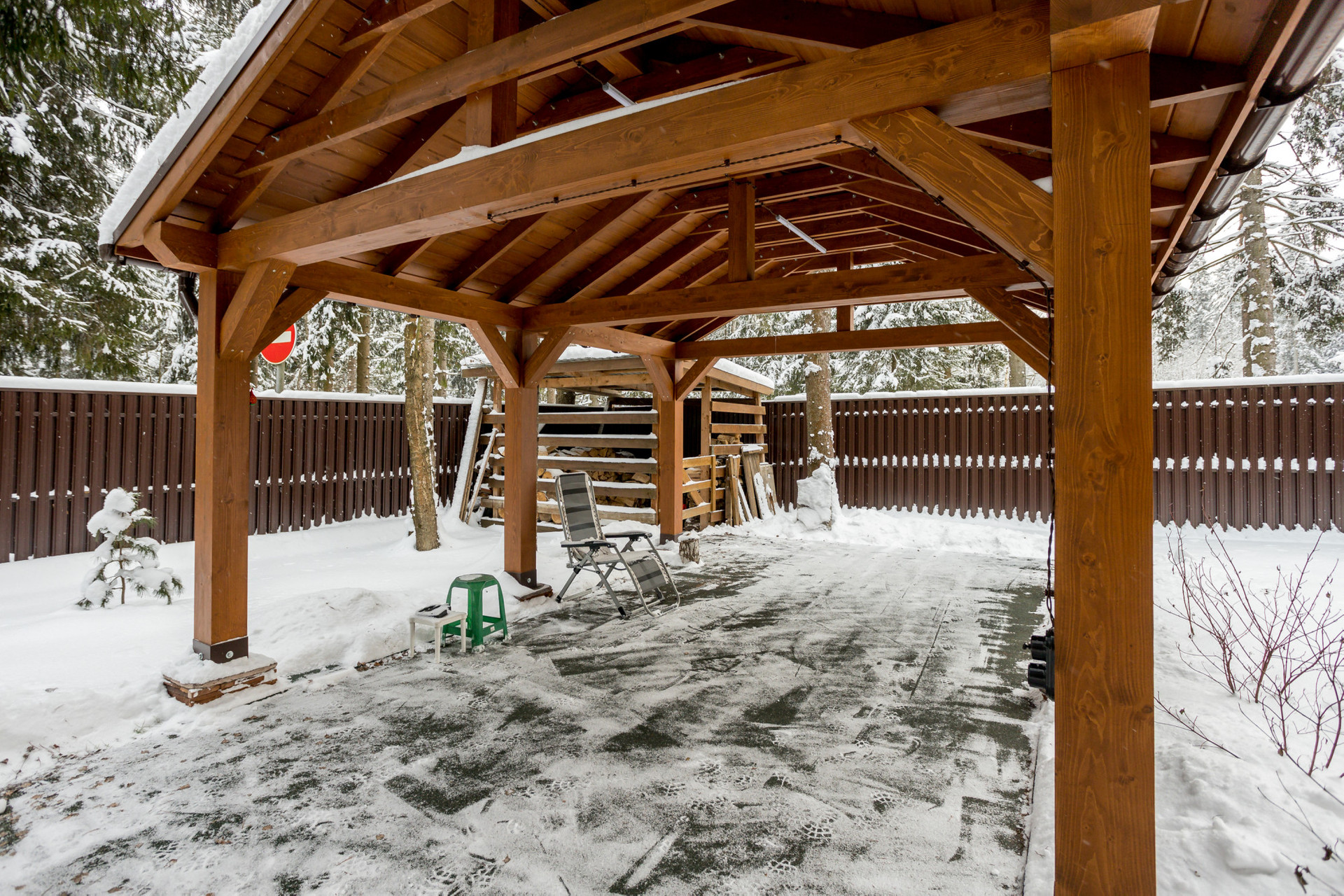 Площадь 9,73 соток, выход к облагороженному пруду и детской площадке. На участке растут сосны и березы. Сделана беседка с прорезиненным полом, идеально подходит для игры в настольный теннис и занятий спортом. В углу участка дровница с крышей.
