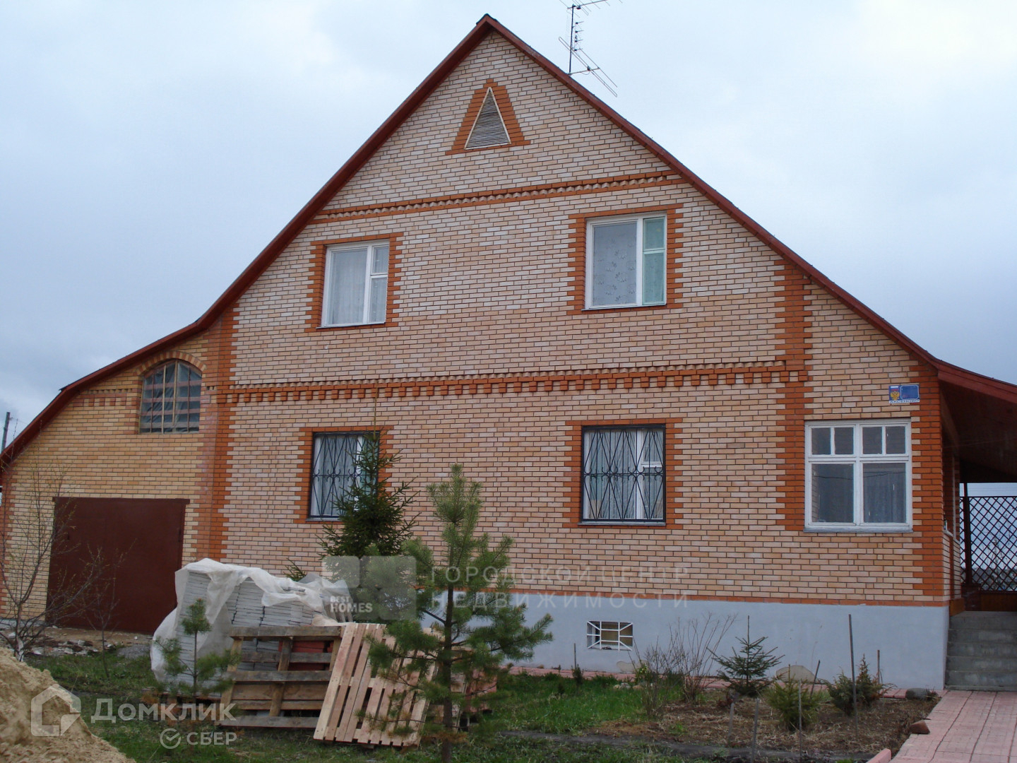 Дом построен из газоблоков и обложен кирпичом.