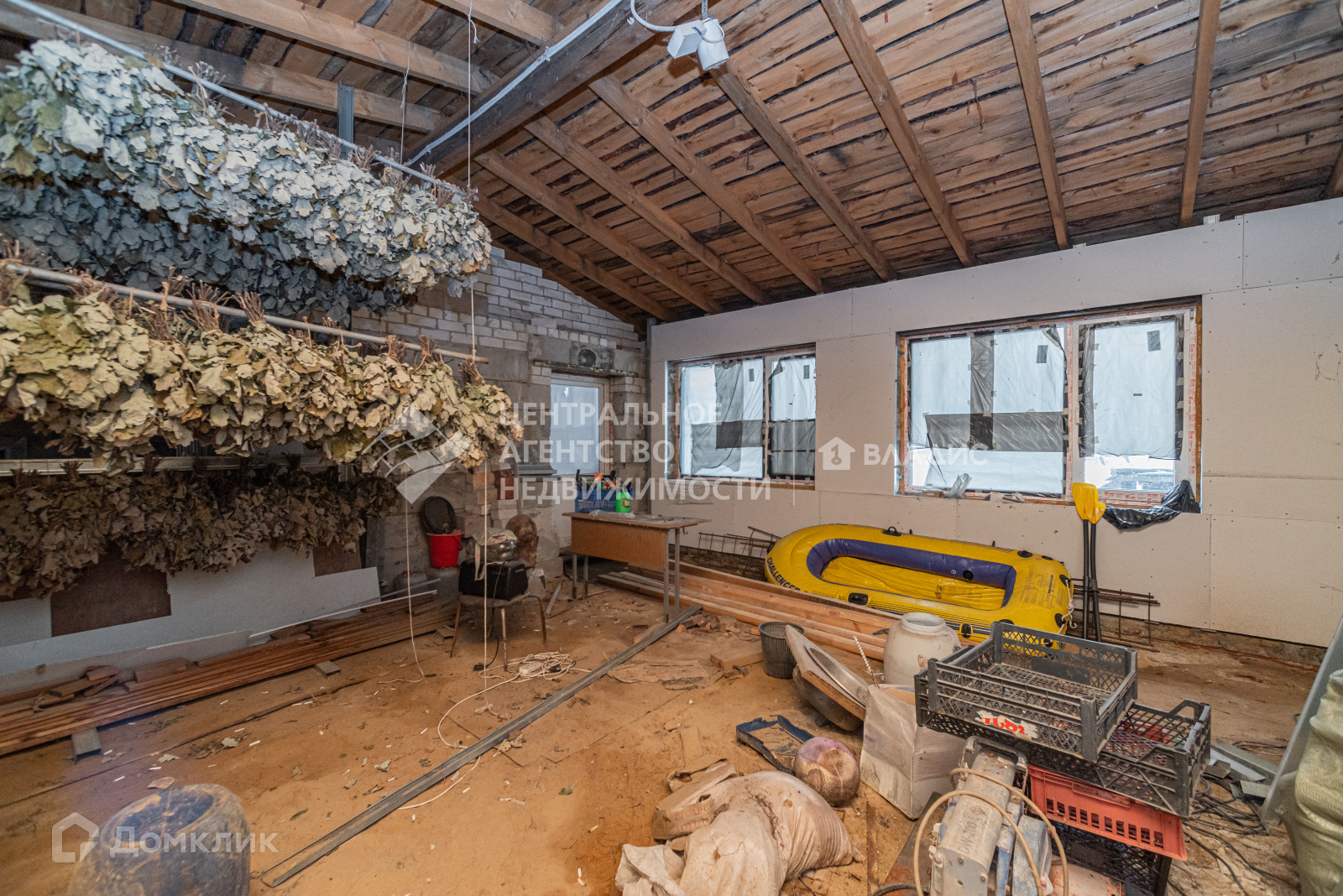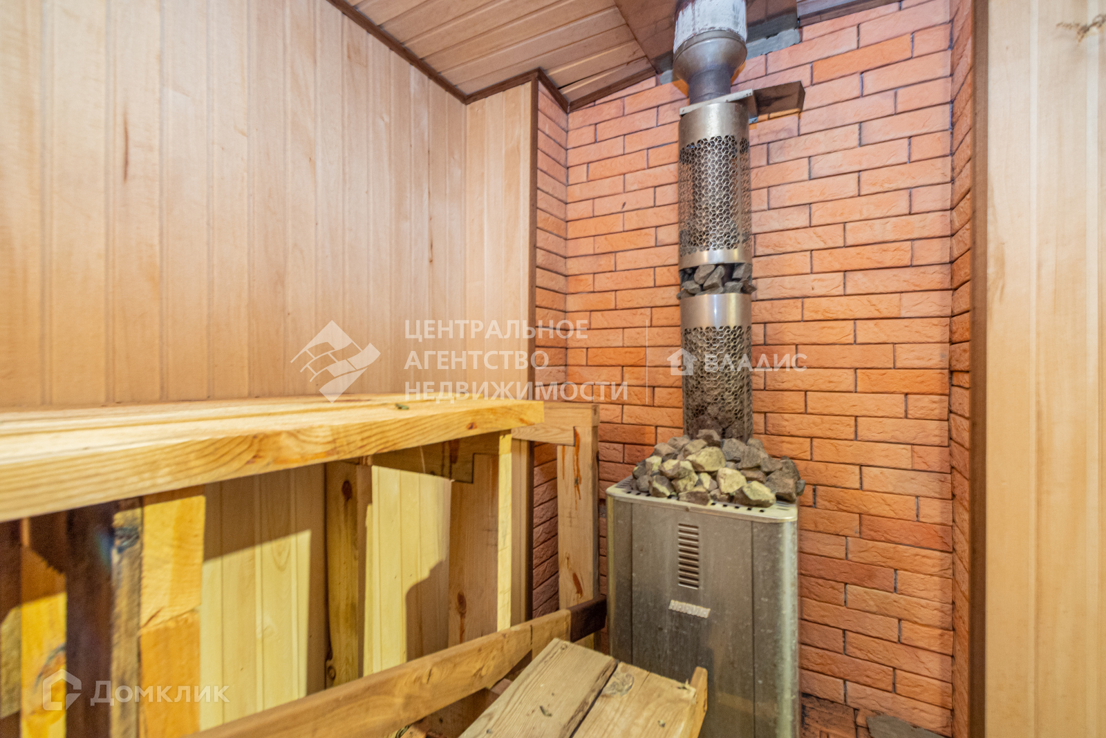 К дому пристроена баня с дровяной печью, есть много вспомогательных помещений, где можно разместить бильярдную, каминный зал и т.д.