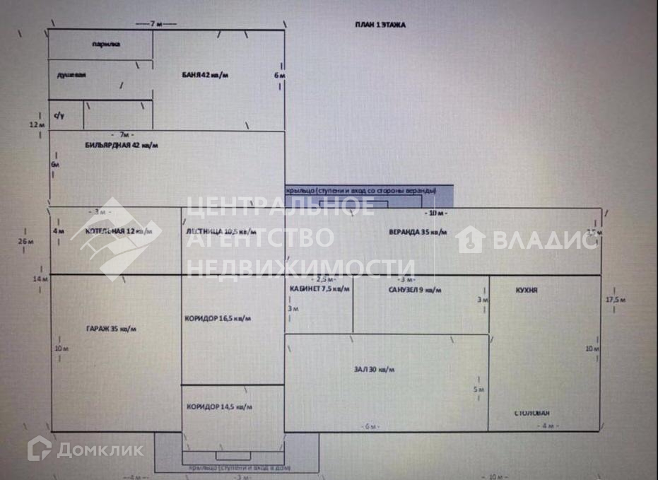 В доме два этажа, подвал, есть гараж, баня, все коммуникации в доме.