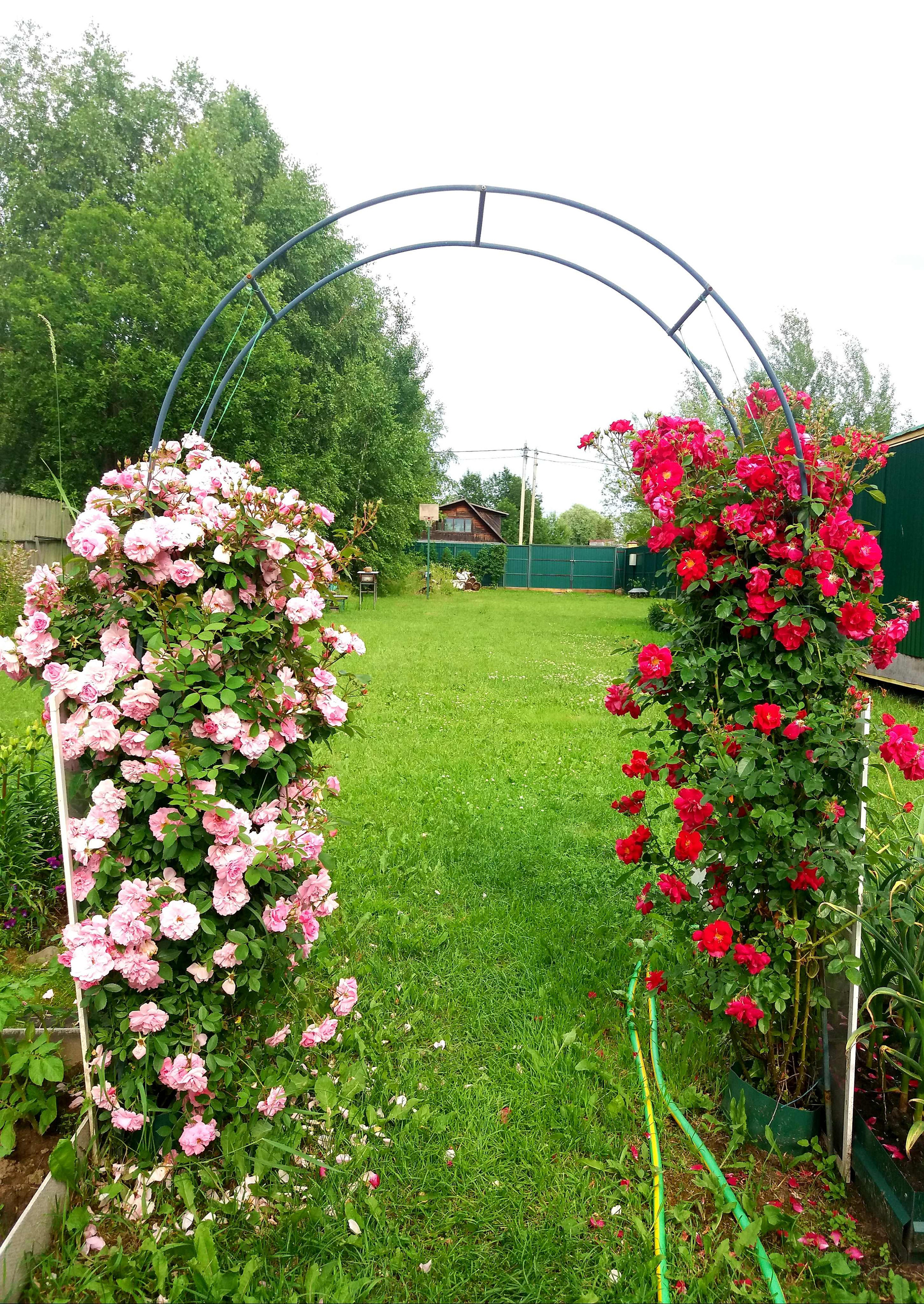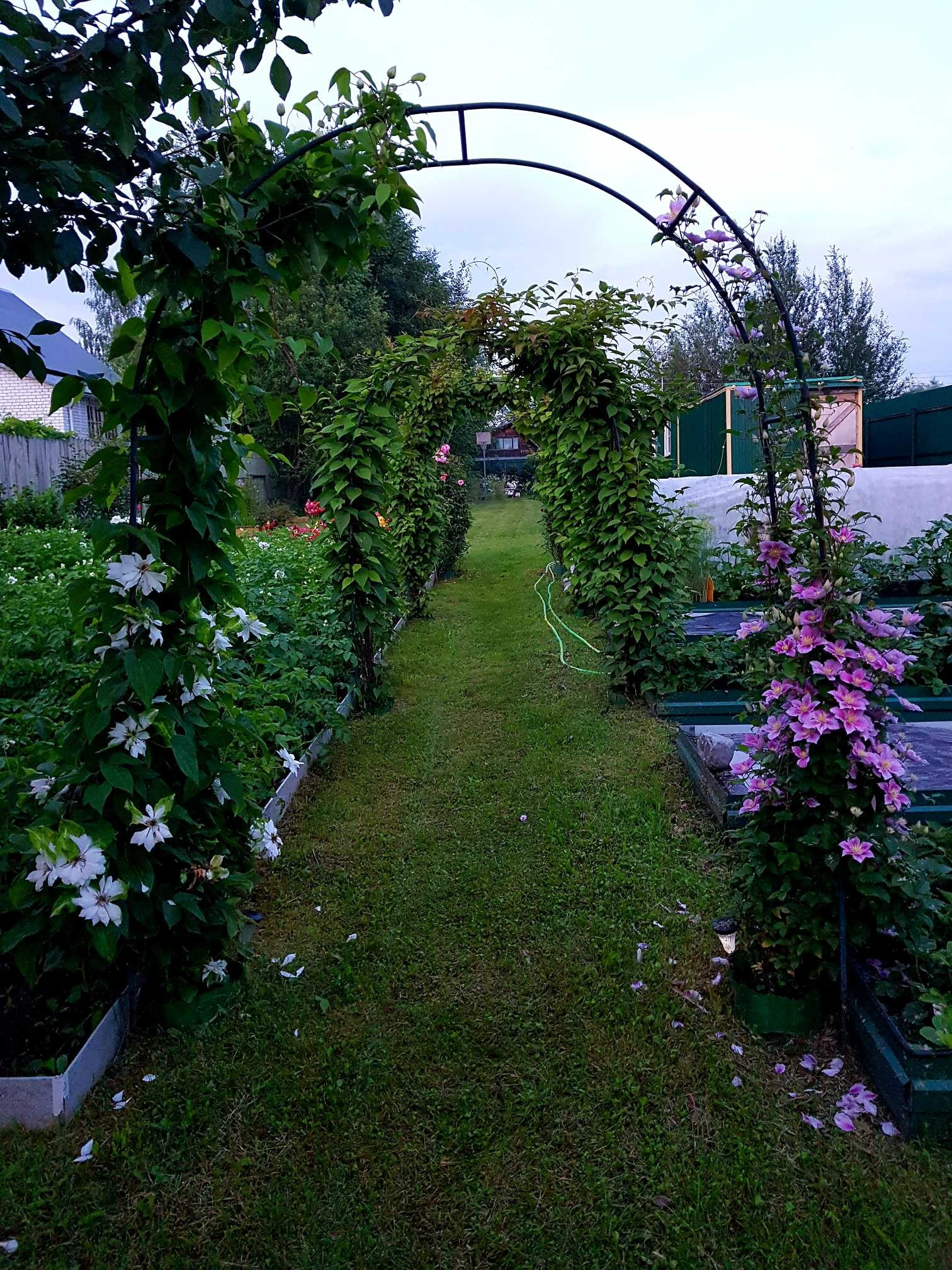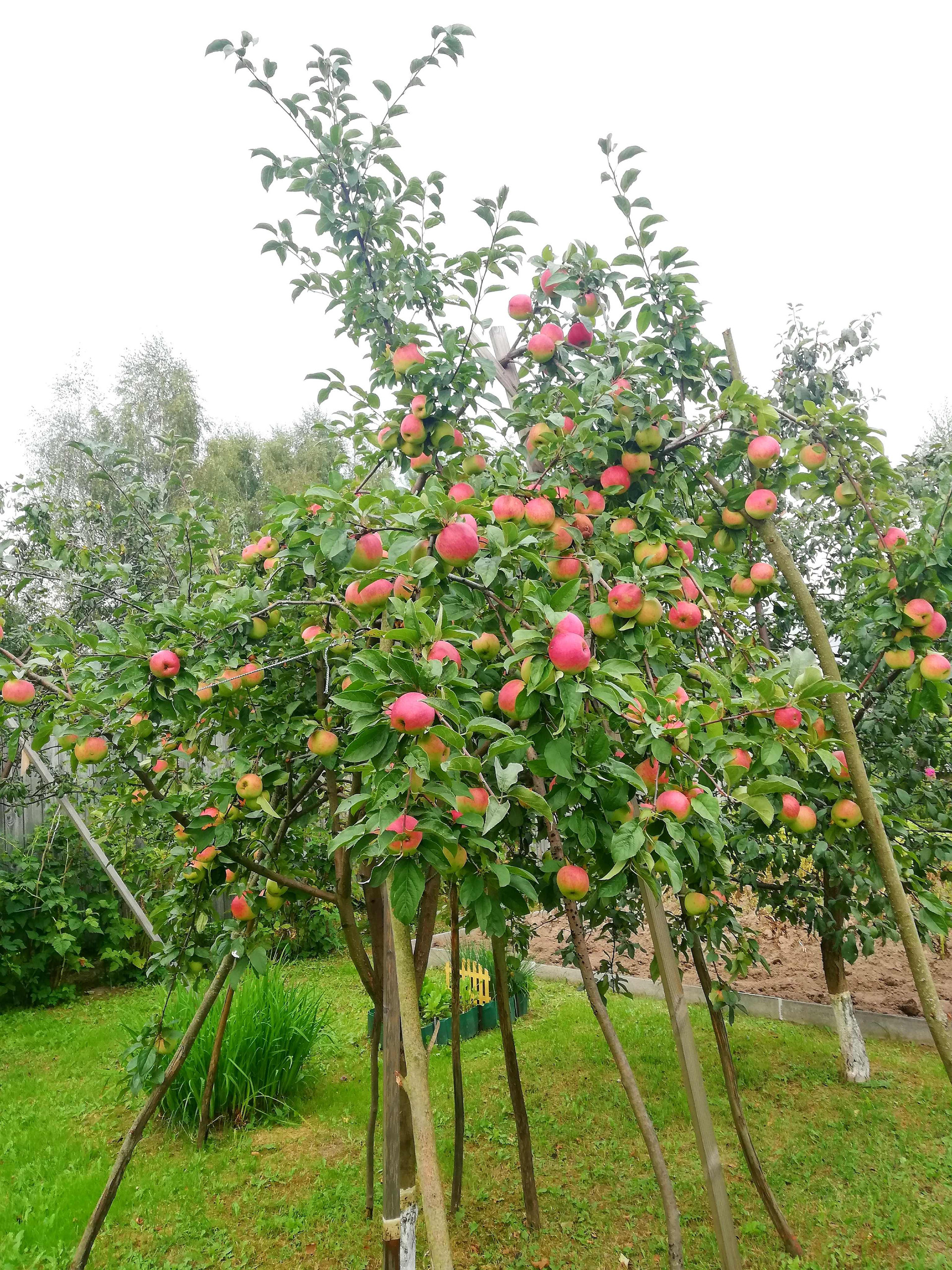 На участке проведено зонирование. Под строительство жилого дома отведено место впереди участка, в глубине находится огород и сад. Под овощи и клубнику установлены оцинкованные грядки с полимерным покрытием, дёрн полностью снят и насыпан плодородный чернозем. Имеется огороженное поле 5×10 под посадку картофеля, в котором выбраны все сорняки и корни. В центре в проходе установлены арки с актинидией и цветник. Посажен виноград кишмиш разных цветов, смородина красная и черная, крыжовник, голубика, малина красная и желтая, ежевика, ежемалина, ирга, йошта, жимолость. Плодовые деревья в саду: яблони, груши, вишни, черешни, сливы, терн, черноплодная рябина. Сад молодой, плодоносит ежегодно, урожай отменный! Все насаждения с указанием сортов занесены в карту посадок.