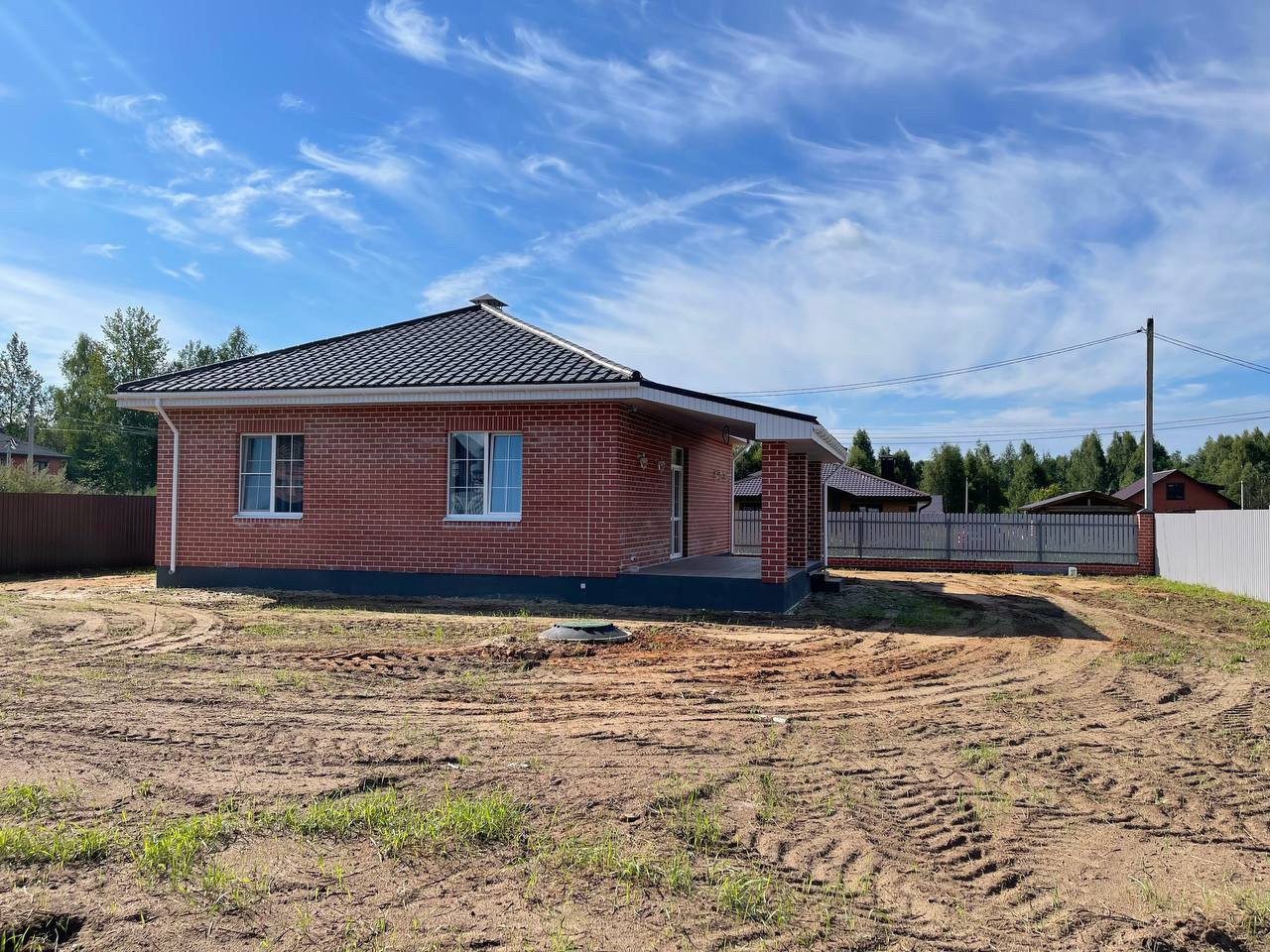 - обнесен забором из проф-листа, по фронту штакетник;