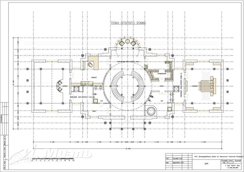 На 2-м этаже: холл с колонами и выходом на два больших балкона с зимним садом, четыре спальни с ванными комнатами, баней, гардеробными.