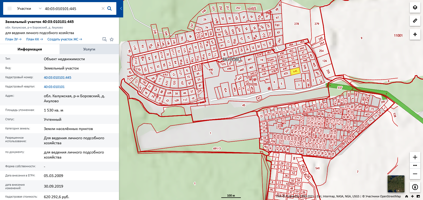 В продаже земельный участок с кадастровым номером 40:03:010101:145 в черте д. Акулово, Боровского района.