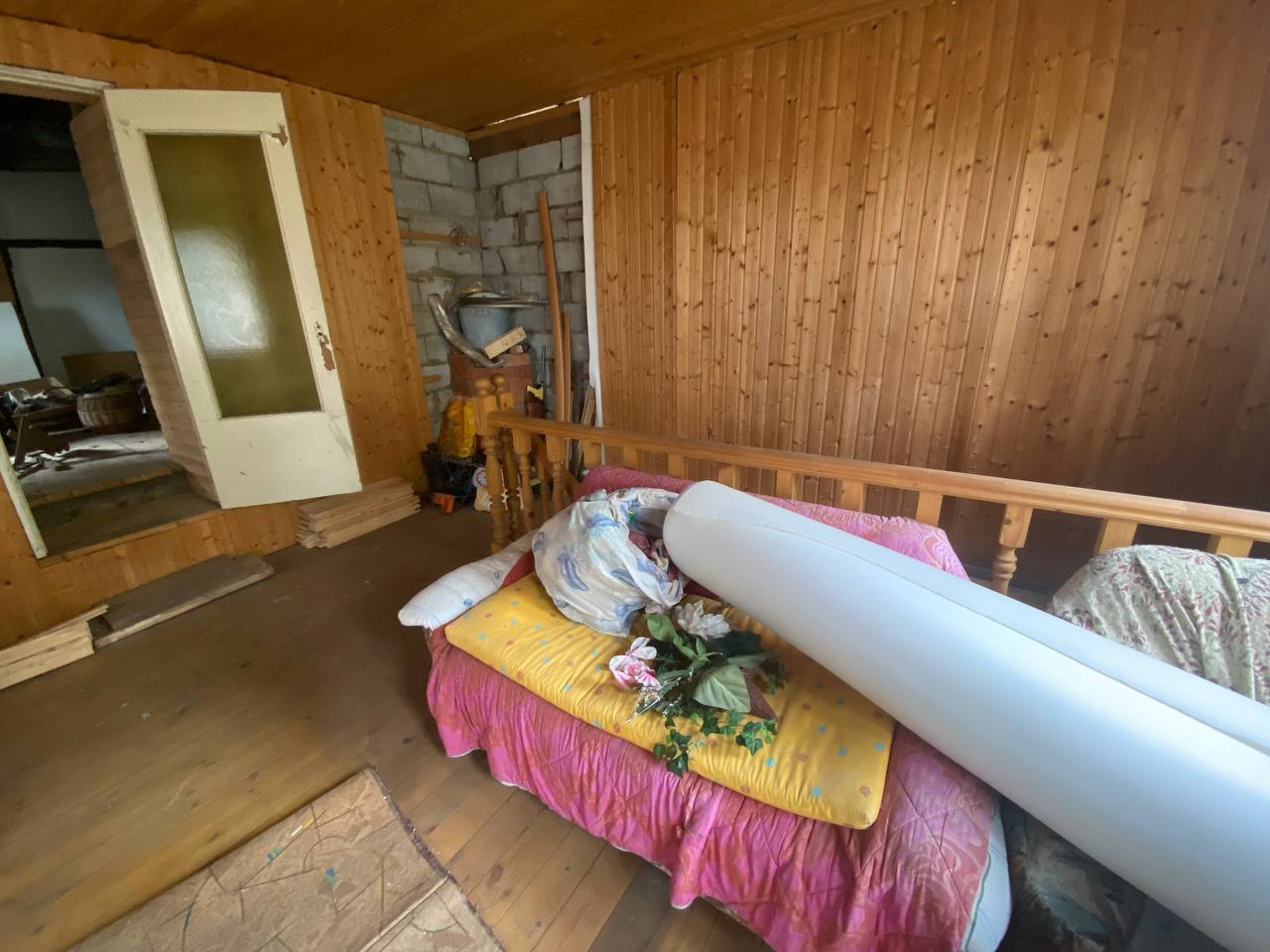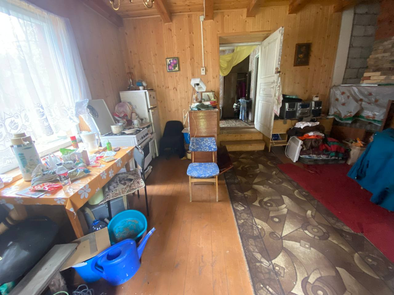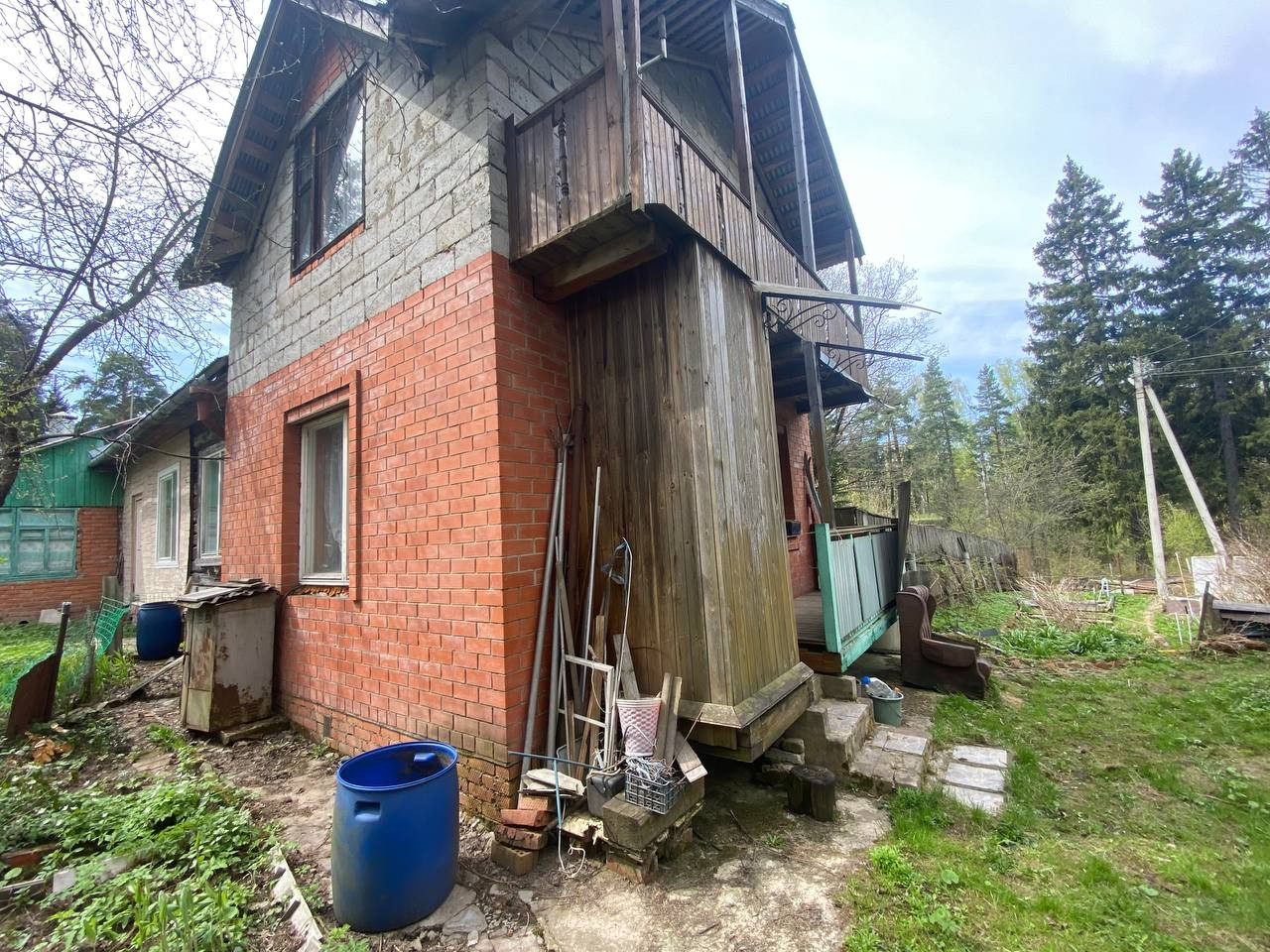 В доме 4 комнаты, балкон. Требуется некоторый ремонт. Туалет на улице. Подведено электричество. Фундамент ленточный, материал стен газобетон/дерево.