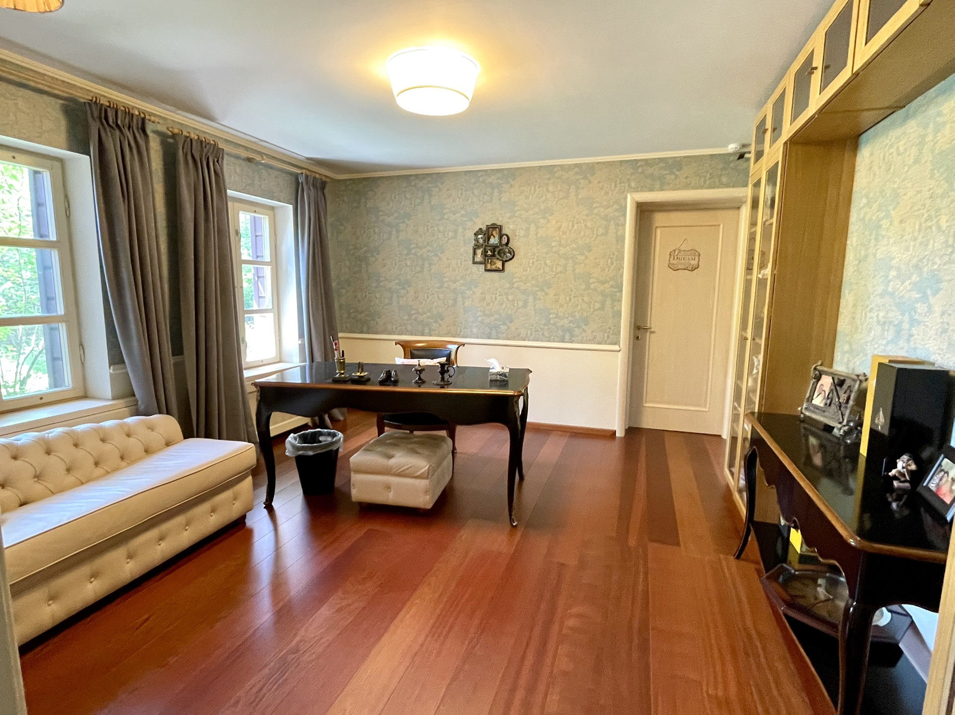 1 этаж: большая прихожая  3 спальни, кабинет, большой санузел с окном, кухня-столовая 28 кв.м, котельная-тех.комната. полы с подогревом.