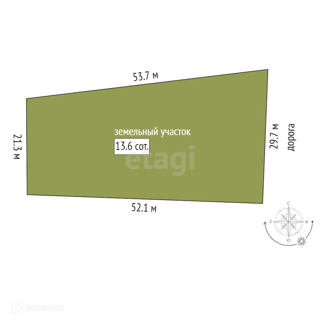 Площадь участка 13.6 сот.