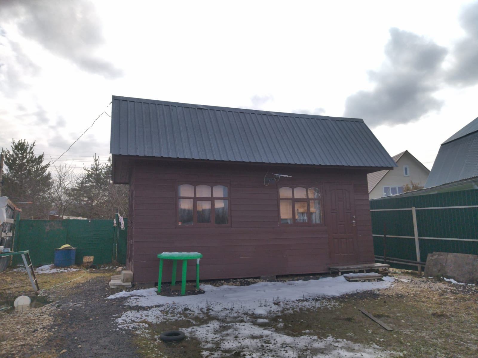 Продается   земельный участок    в   СНТ   Ветеран  4, д .  Алачково , Чеховского района, Московской обл. в тихом экологически  чистом месте  . Участок   10  соток   , проведён свет .  На   участке   летний   дом    , туалет  и   большой  блочный   капитальный  гараж ( 11 х 6 ) с  высокими  воротами ( возможно перестроить в жилое помещение).   Растут плодовые   деревья  ,  кусты  и  многолетние  цветы , на участке есть 2 парника  ,  колодец  с питьевой  водой . Участок высокий и  сухой  .  Участок огорожен забором   из  проф. настила  со всех сторон , есть ворота, что даёт возможность загнать машину на участок .  В СНТ есть детская площадка.   Соседи проживают круглогодично.