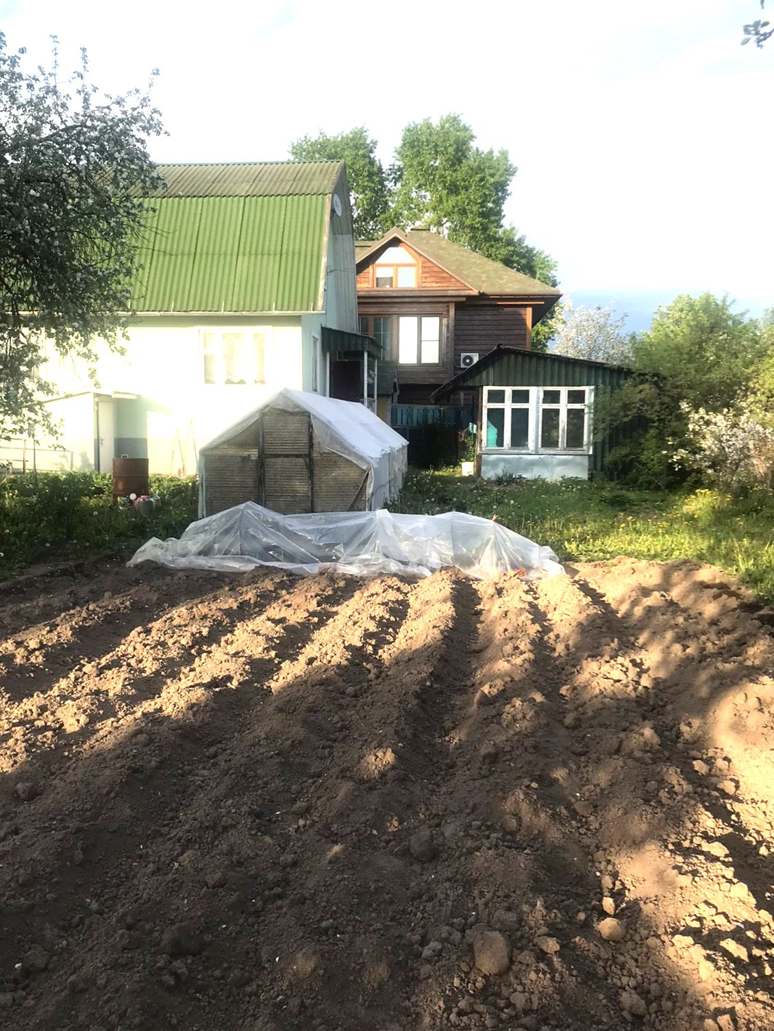 Дом зимний, теплый. Участок разработан, плодовые деревья и кустарники. На участке есть теплица и гараж, большая беседка. Участок огорожен.
