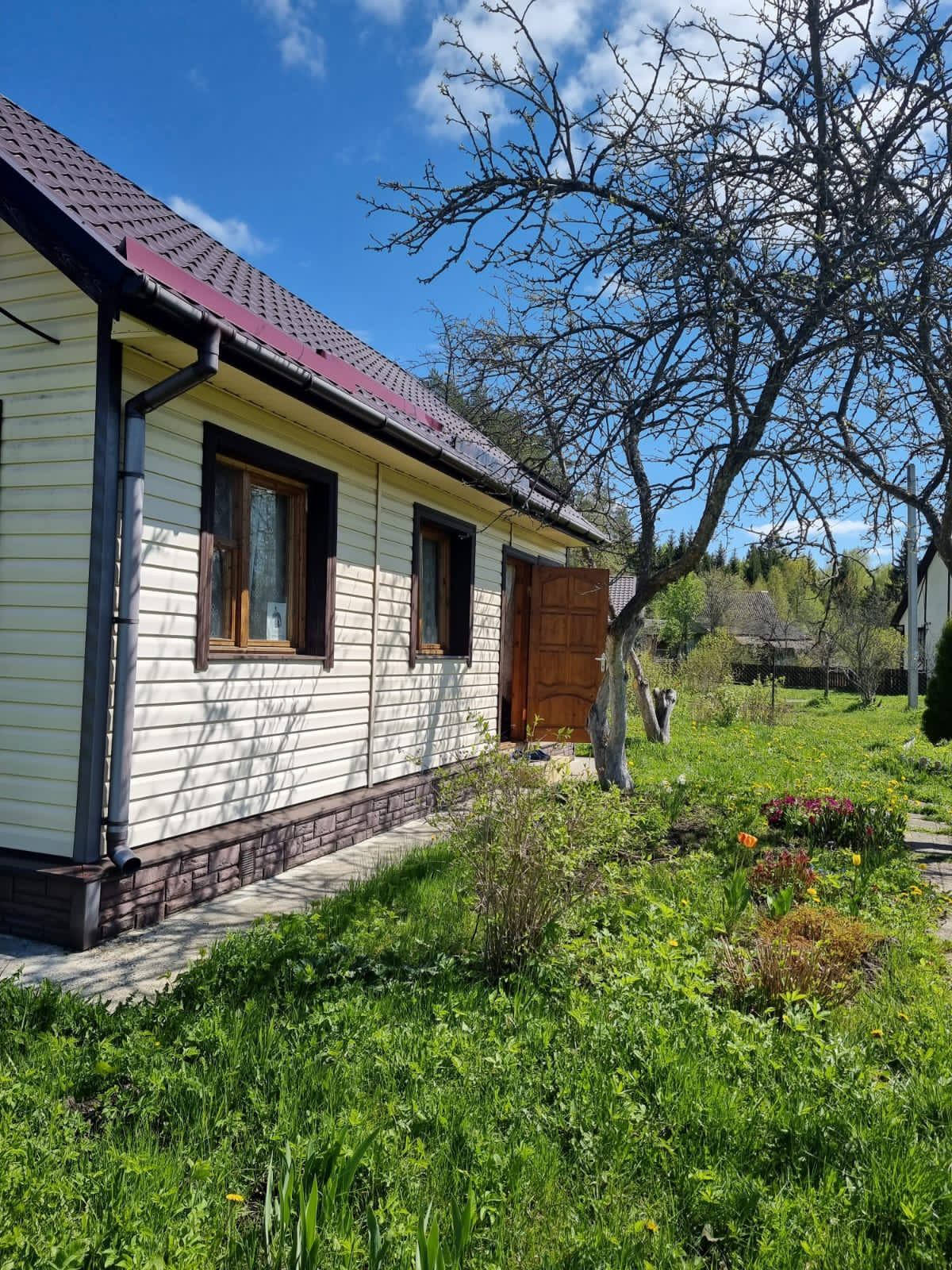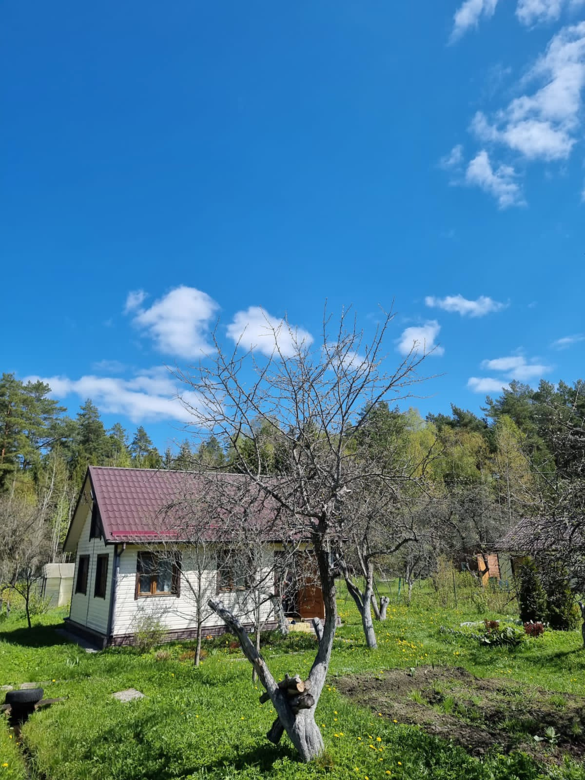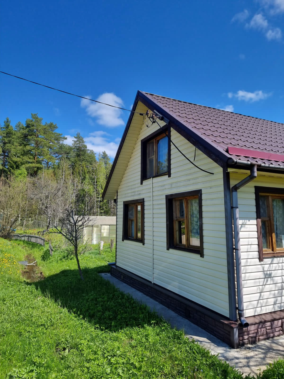 Участок высокий, сухой, 6 соток земли, дом 8×5.5м деревянный обшит сайдингом на бетонном ленточном фундаменте с бетонной отмосткой, крыша металлочерепица.