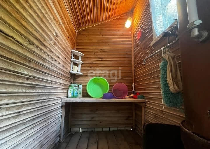 Участок 6 соток - высокий, ровный, сухой, с плодово-ягодными насаждениями. На территории располагается: теплицы, сарай, душевая--баня (горячая с дровеной колонкой), туалет. За участком находится пруд. Летний водопровод, колодец.