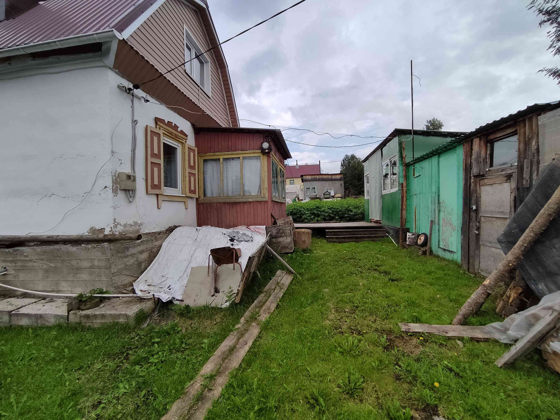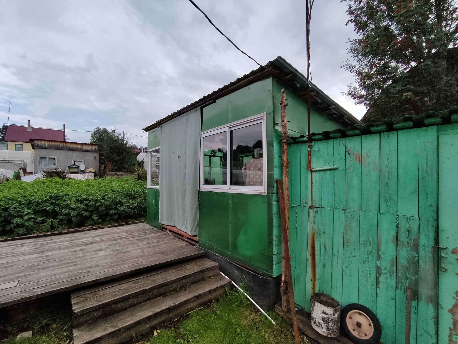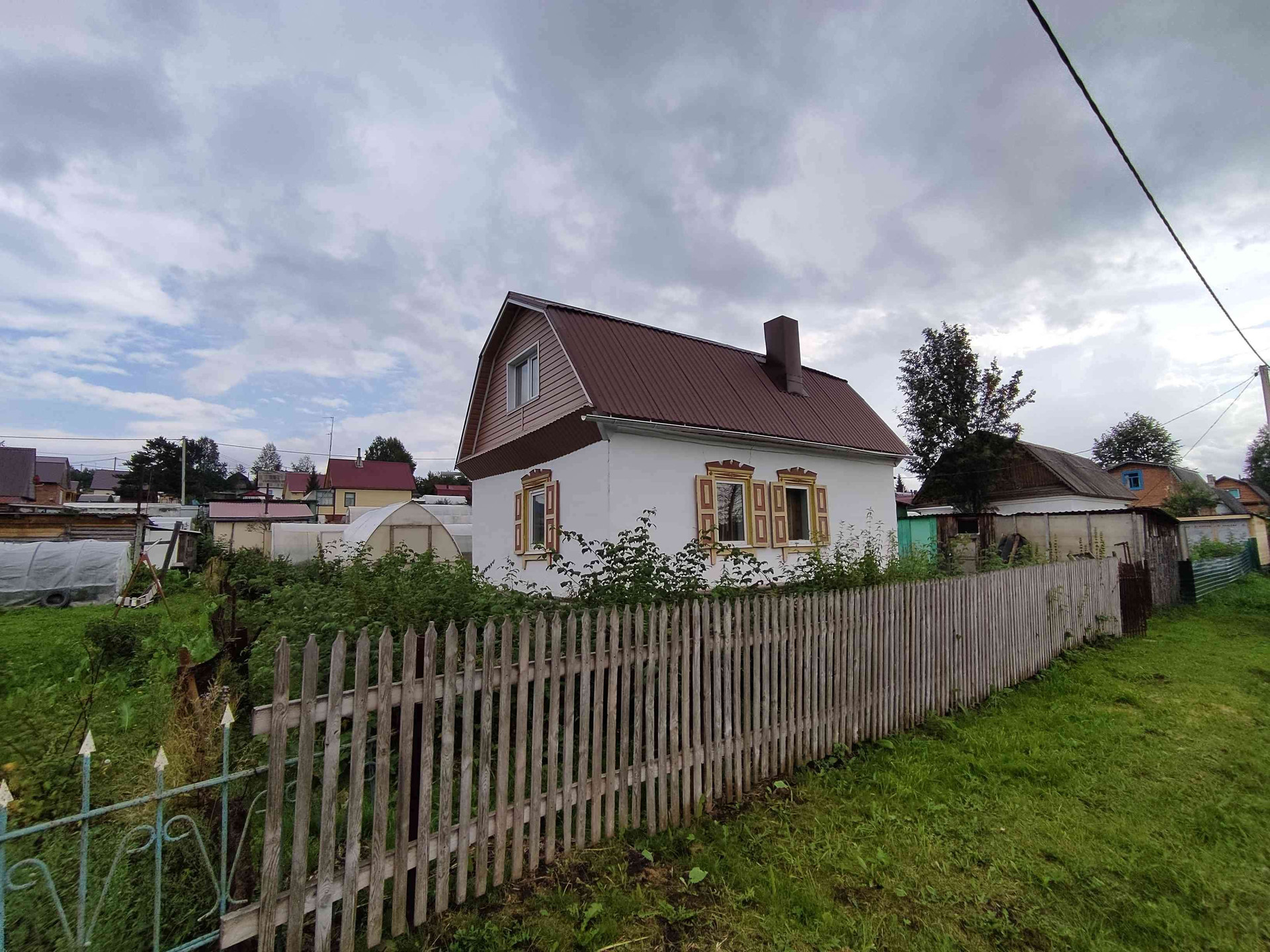 Ухоженный участок, теплый дом, с возможностью проживания зимой. Электроэнергия. Водопровод летний. Есть баня, навес, сарай, 2 теплицы.