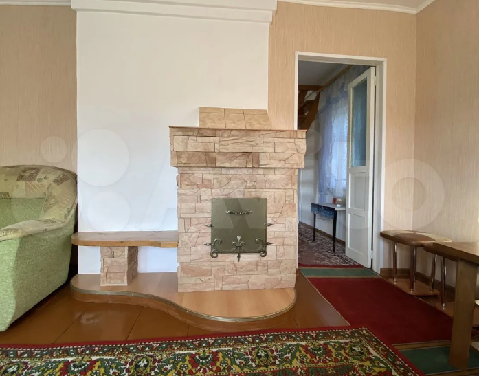 На первом этаже летняя комната , кухня , комната для гостей и зал с выходом на балкон. В зале действующий камин.