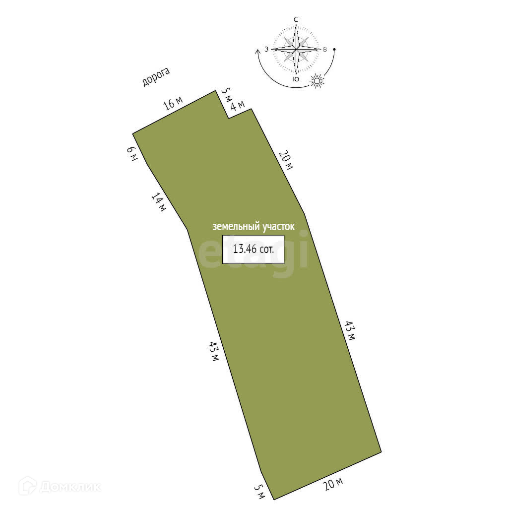 Площадь участка 13.5 сот.