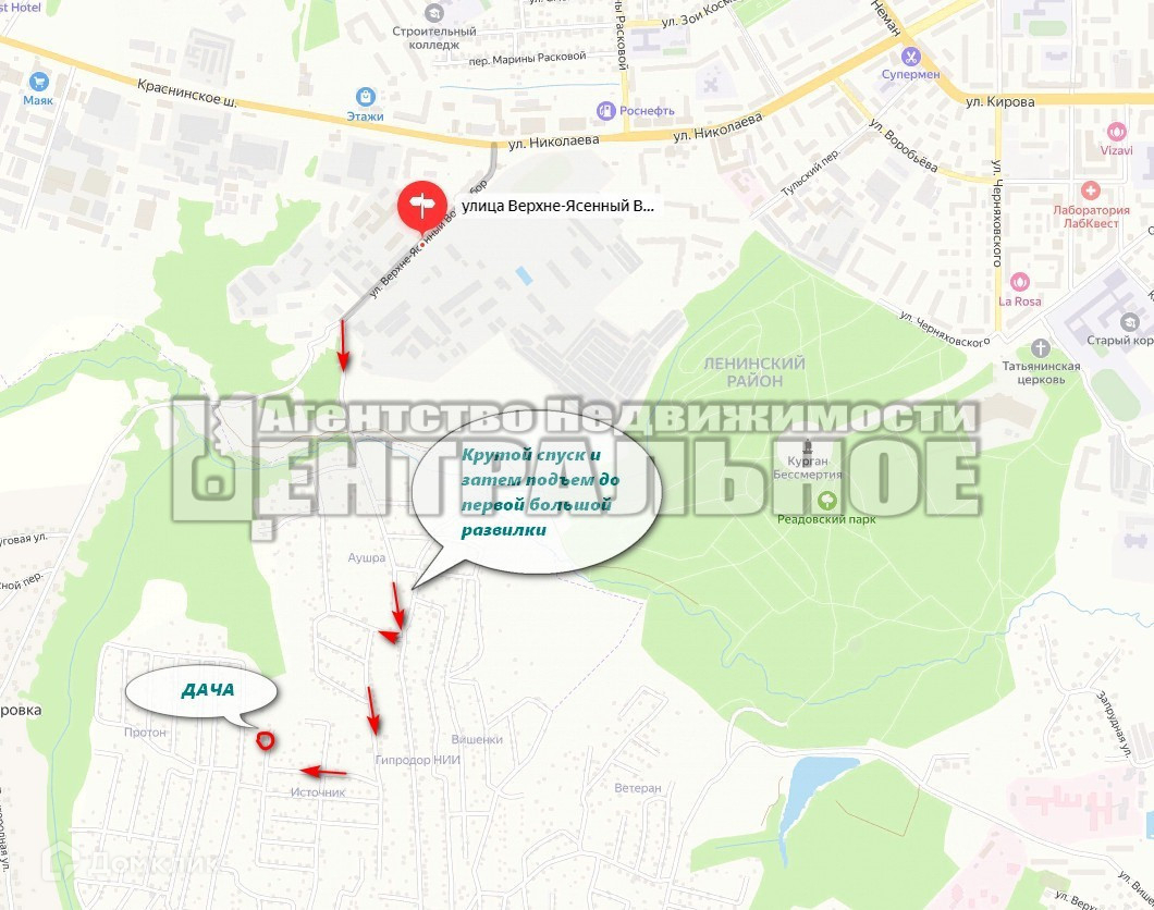 Заезд через воинскую часть на Краснинском шоссе или через Вишенки, но долго..