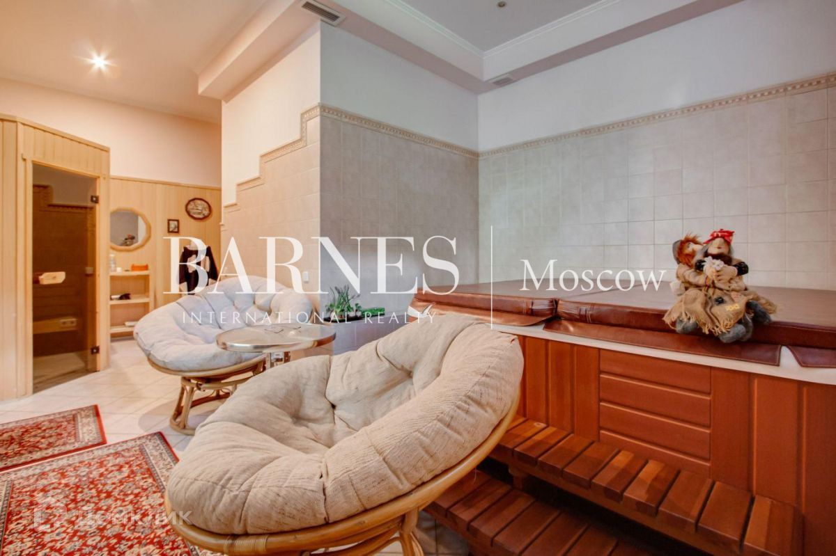 В коттедже разместили 4 спальни, кабинет, гостиную с камином и вторым светом, кухню, бильярдную, сауну и бассейн длиной 10 метров. На просторном участке 50 соток с многолетними соснами обустроена беседка, выполнен ландшафтный дизайн и вымощены дорожки.