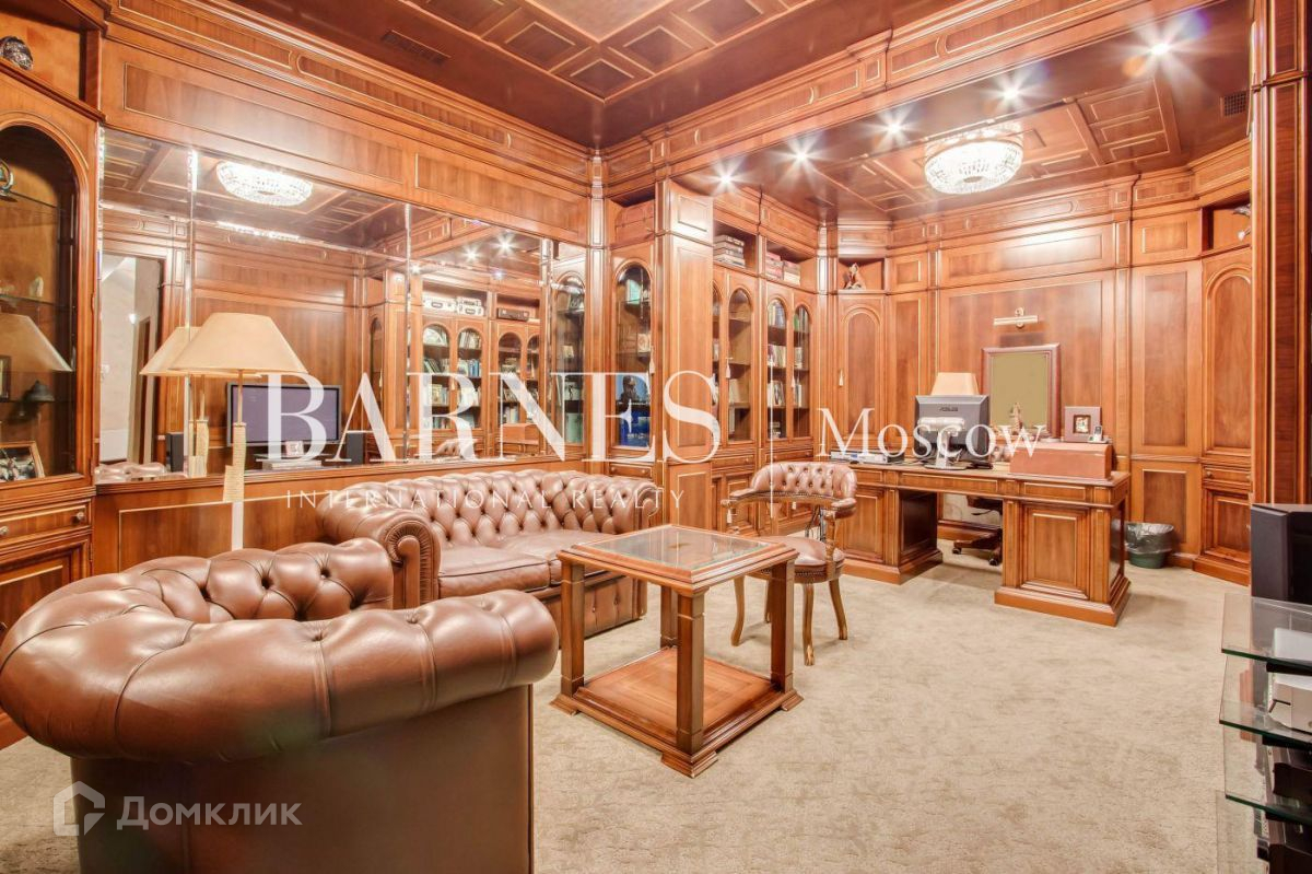 Коттедже в классическом стиле площадью 750 кв.м на шикарном лесном участке 50 соток. Фасад главного здания выполнен в английском стиле и облицован клинкерным кирпичом. Интерьер оформлен в теплых оттенках, установлена мебель итальянских брендов.