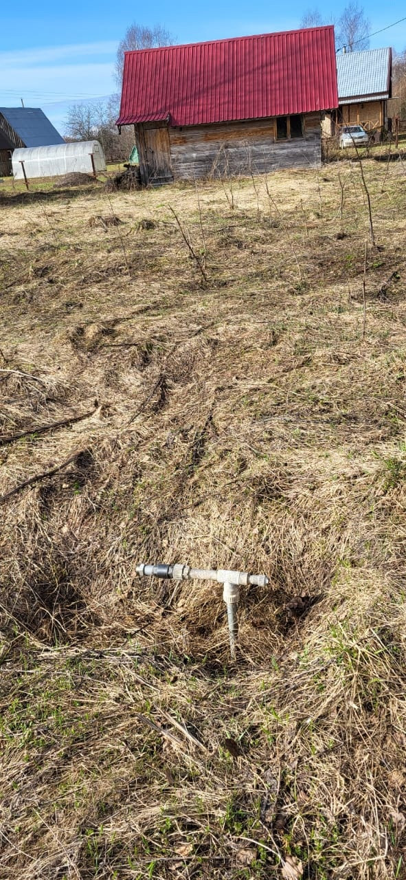 Участок 16,6 соток размежеван, забором не огорожен. На участке есть скважина (система подкачки воды есть,просто убрана).  Вода хорошая,чистая,питьевая. На территории посажены яблоня, береза, ели.