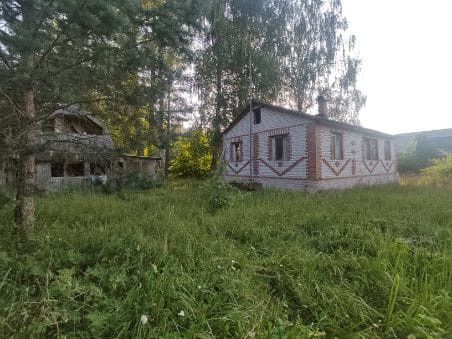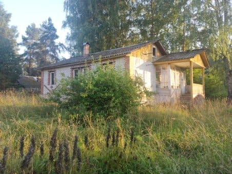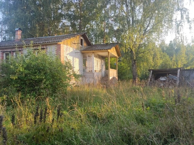 Продаётся дом на берегу реки в небольшом живописном коттеджном посёлке рядом с д. Александровское (1,5 км) в Новгородской области (59 км от Новгорода, 190 км от Санкт-Петербурга и в 15 км от скоростной автодороги Санкт-Петербург – Москва М11). Дом одноэтажный 58,2 м2, жилая площадь 44,5 м2. Участок 11,5 соток. Дом сборно-щитовой и обложенный кирпичом. Три жилых комнаты 15,3 + 14,7 + 114,5 м2, кухня 13,7, комнаты квадратные, поэтому просторные, большая веранда, кладовая и туалет. В доме водопровод. На участке бревенчатая баня. Рядом живописный лес.