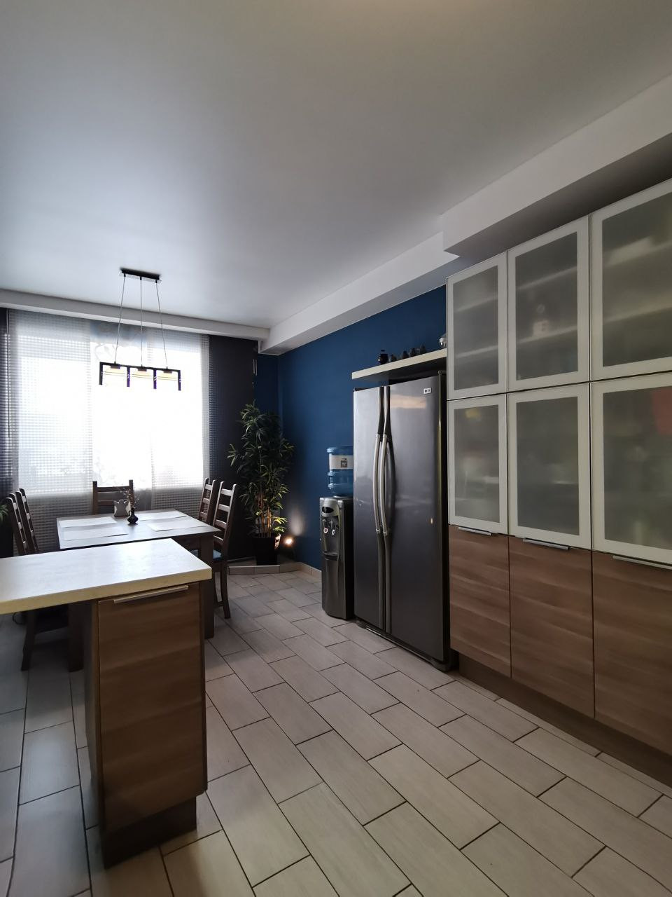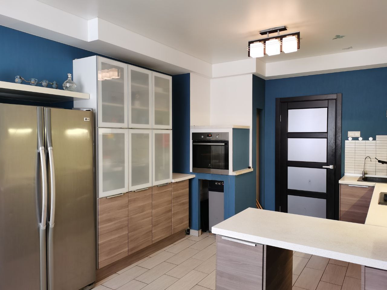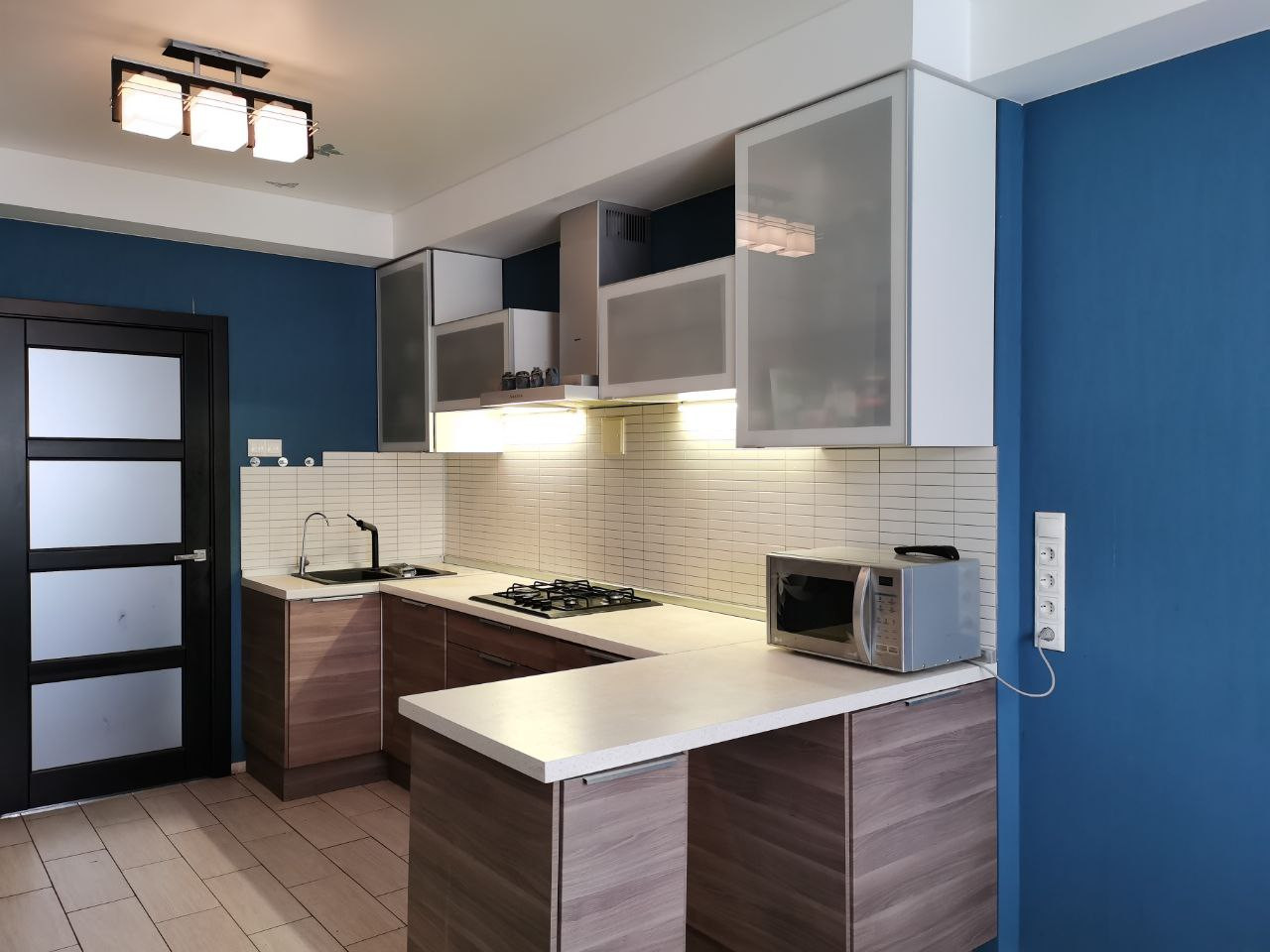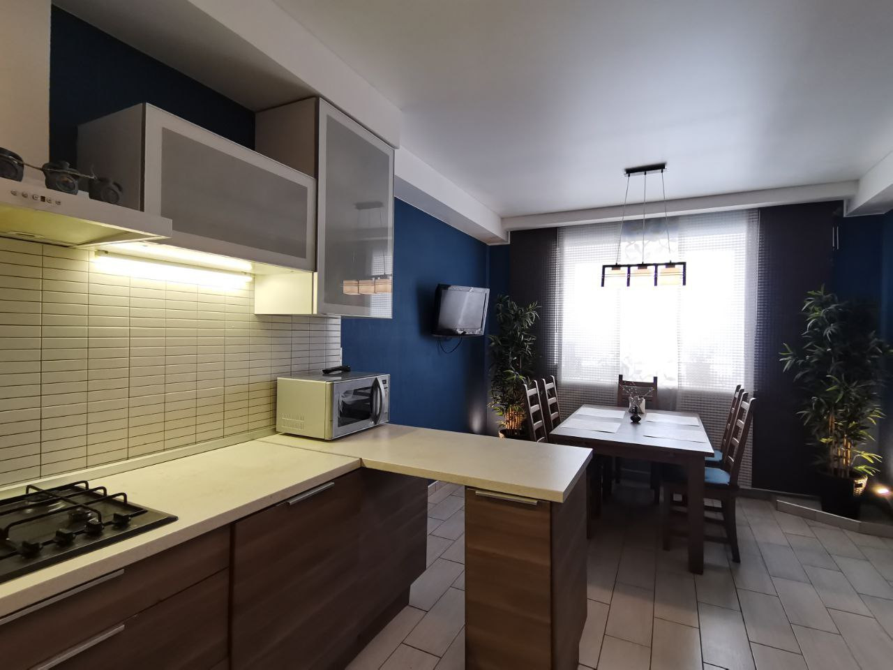 Грамотно выделены рабочая и обеденная зона, с гармоничной подсветкой
