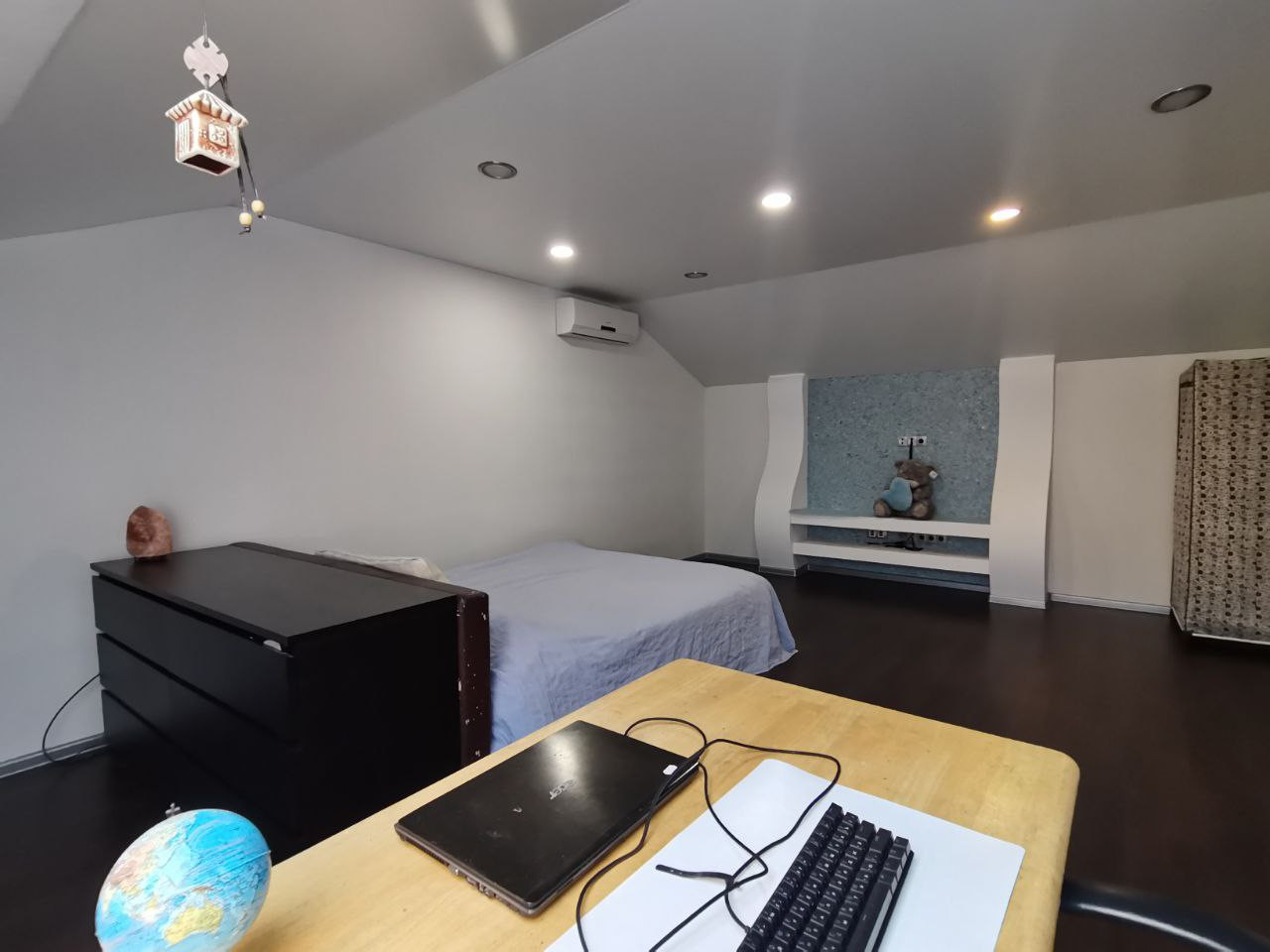 Мансардный этаж: две детские комнаты 22,5/25,5 кв.м, установлены кондиционеры Eiectroiux, холл 20,1 кв.м, с/у 4,7 кв.м совмещенный, в кафеле, зона хранения 20,0 кв.м.