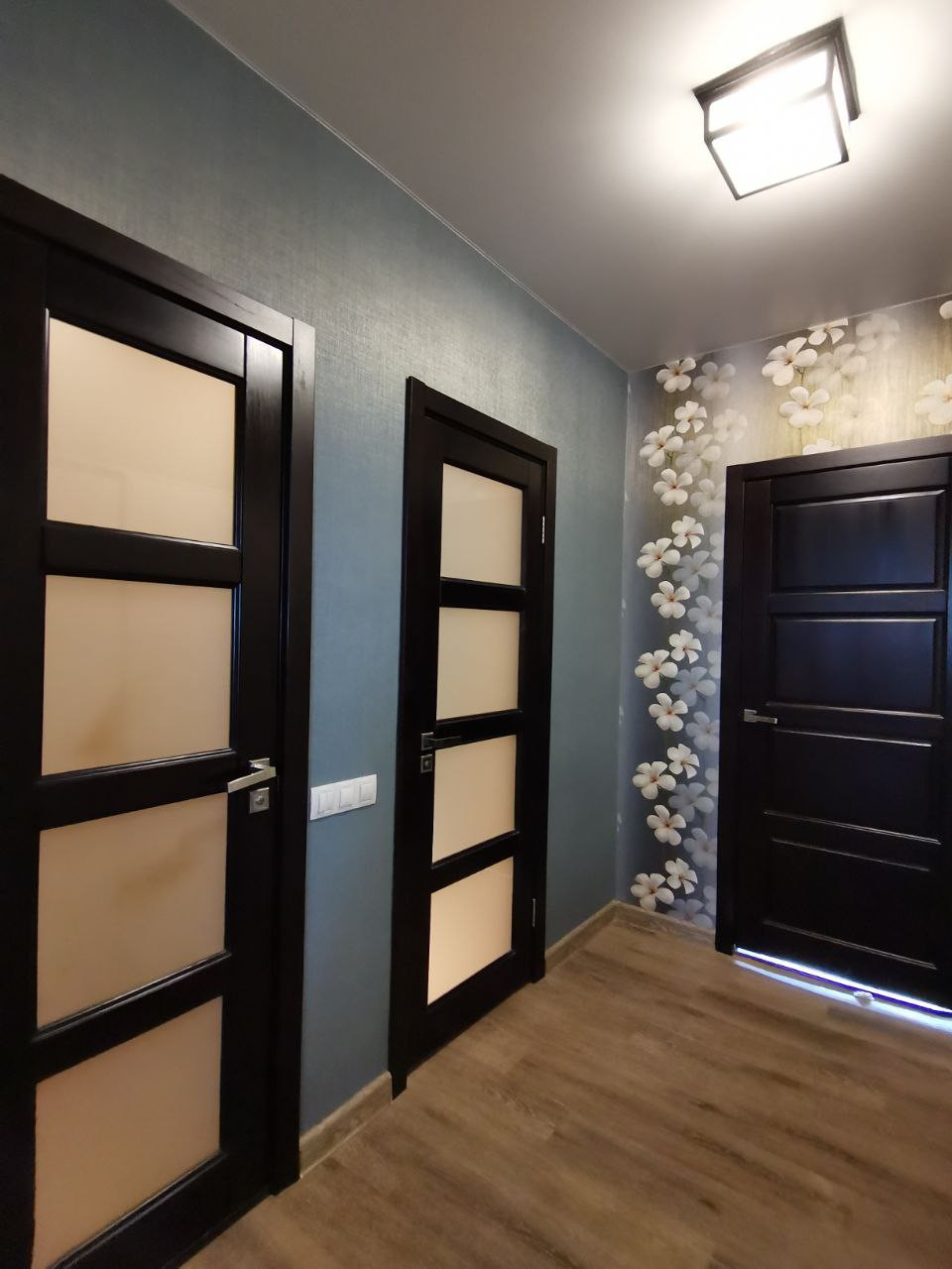 Свободный холл 6,0 кв.м, встроенные шкафы остаются.
