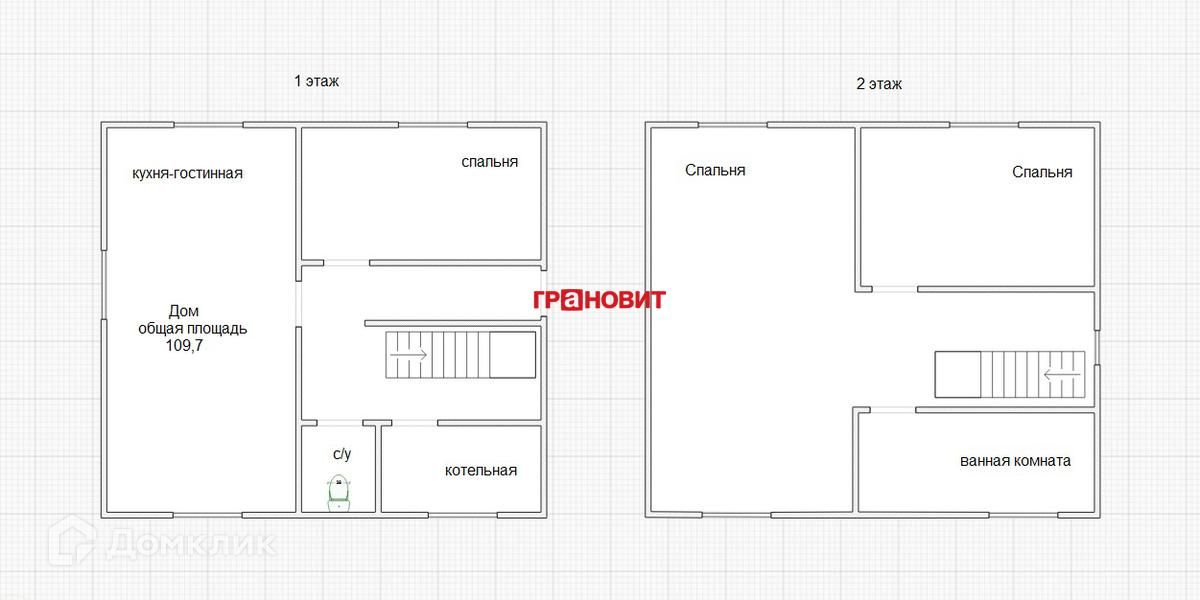второй этаж: две спальни, ванная комната