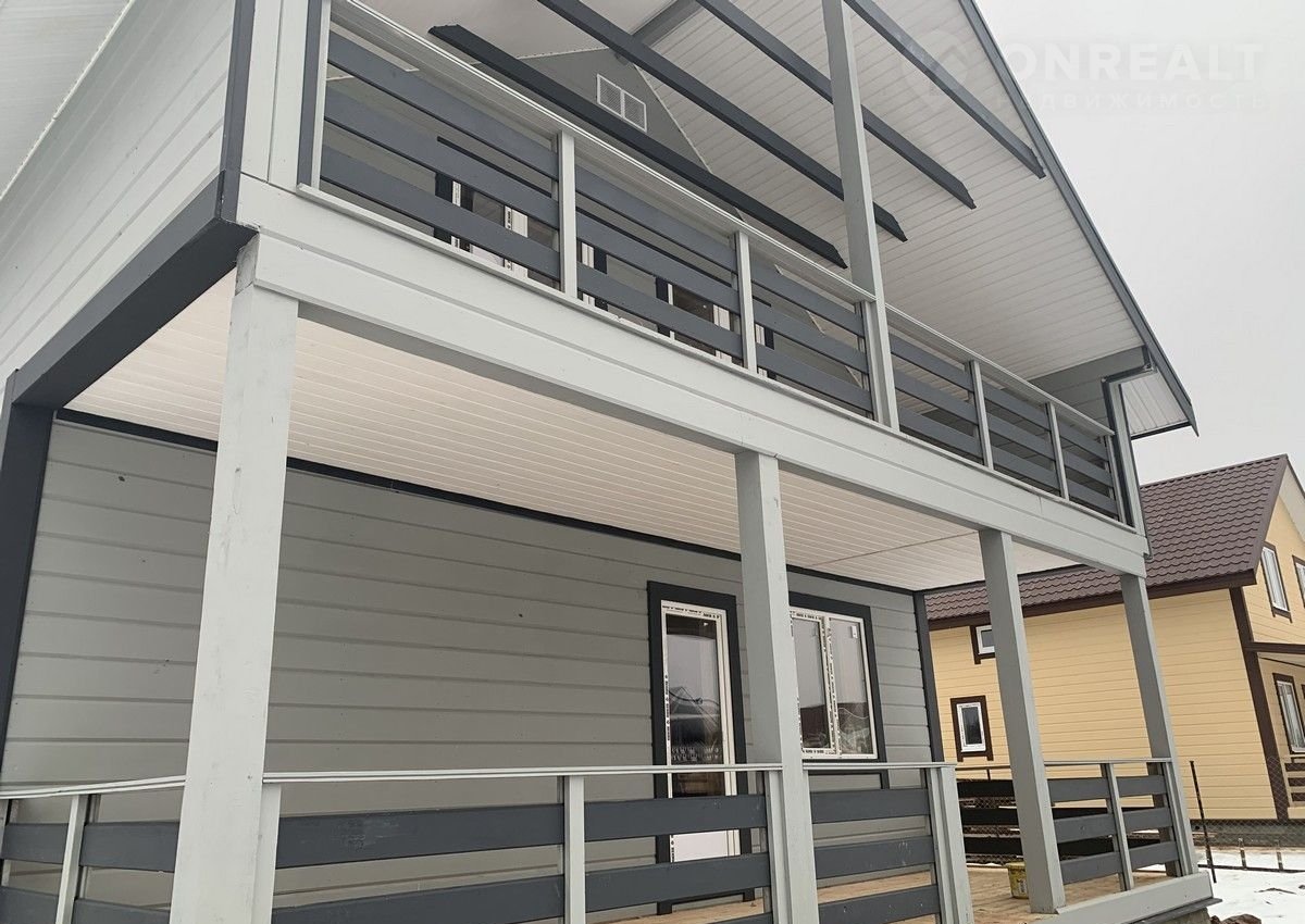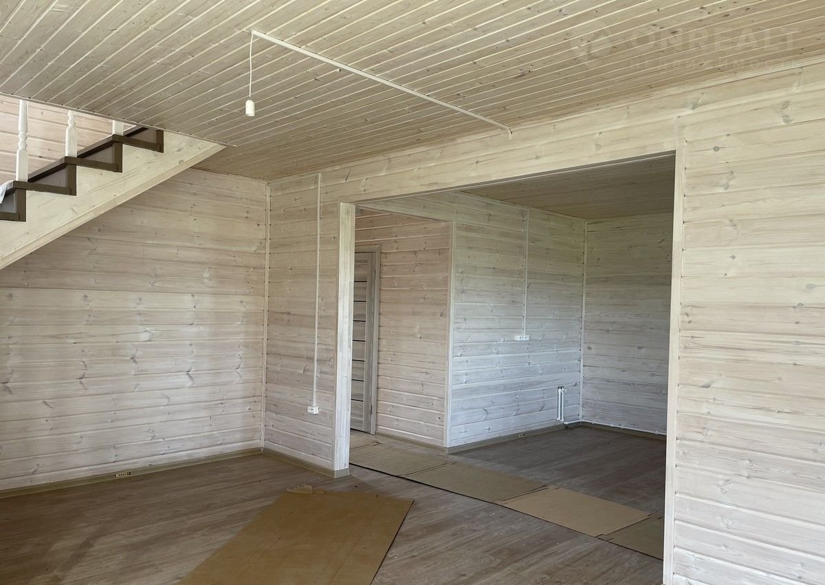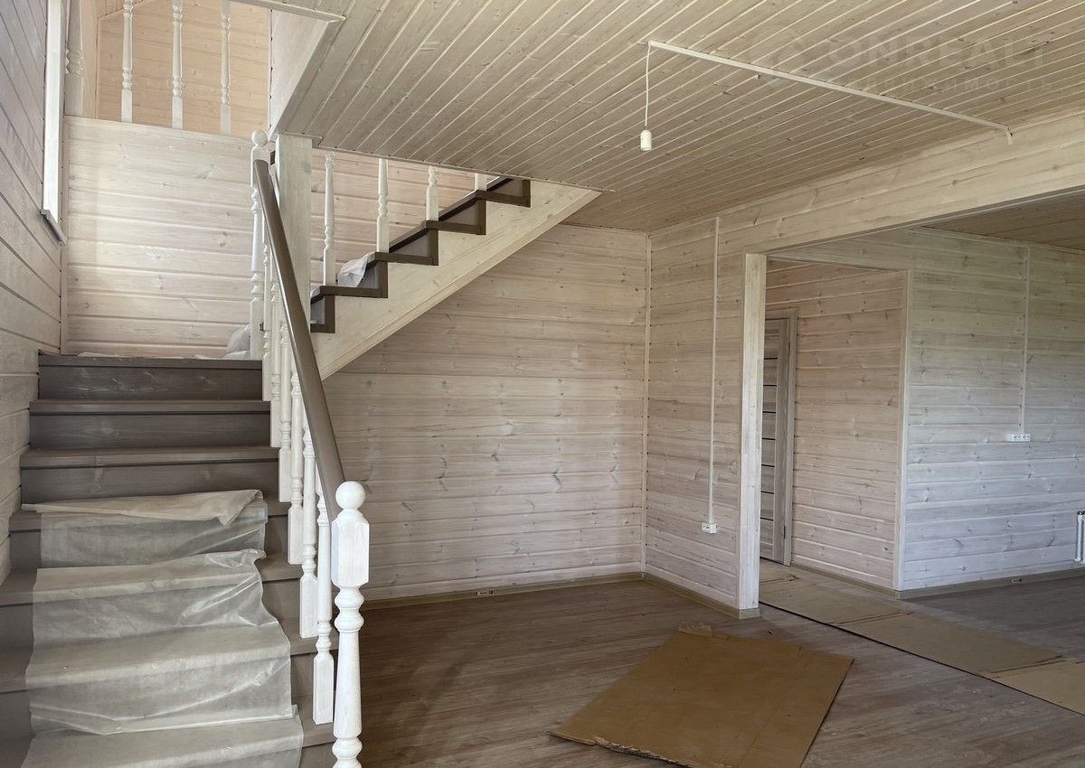 Первый этаж: крыльцо, терраса, прихожая, кухня – гостиная с лестницей на второй этаж и выходом на просторную веранду, с/у полностью оборудован, стены отделаны пластиковыми панелями), отдельная комната. На втором этаже 3 комнаты и холл и санузел.