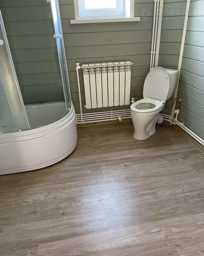 Электричество разведено по дому. Вода - колодец, горячая и холодная (бойлер - водонагреватель) заведена в дом по-зимнему, с подогревом. Отопление – электро котел. Установлена сантехника, душевая кабина.