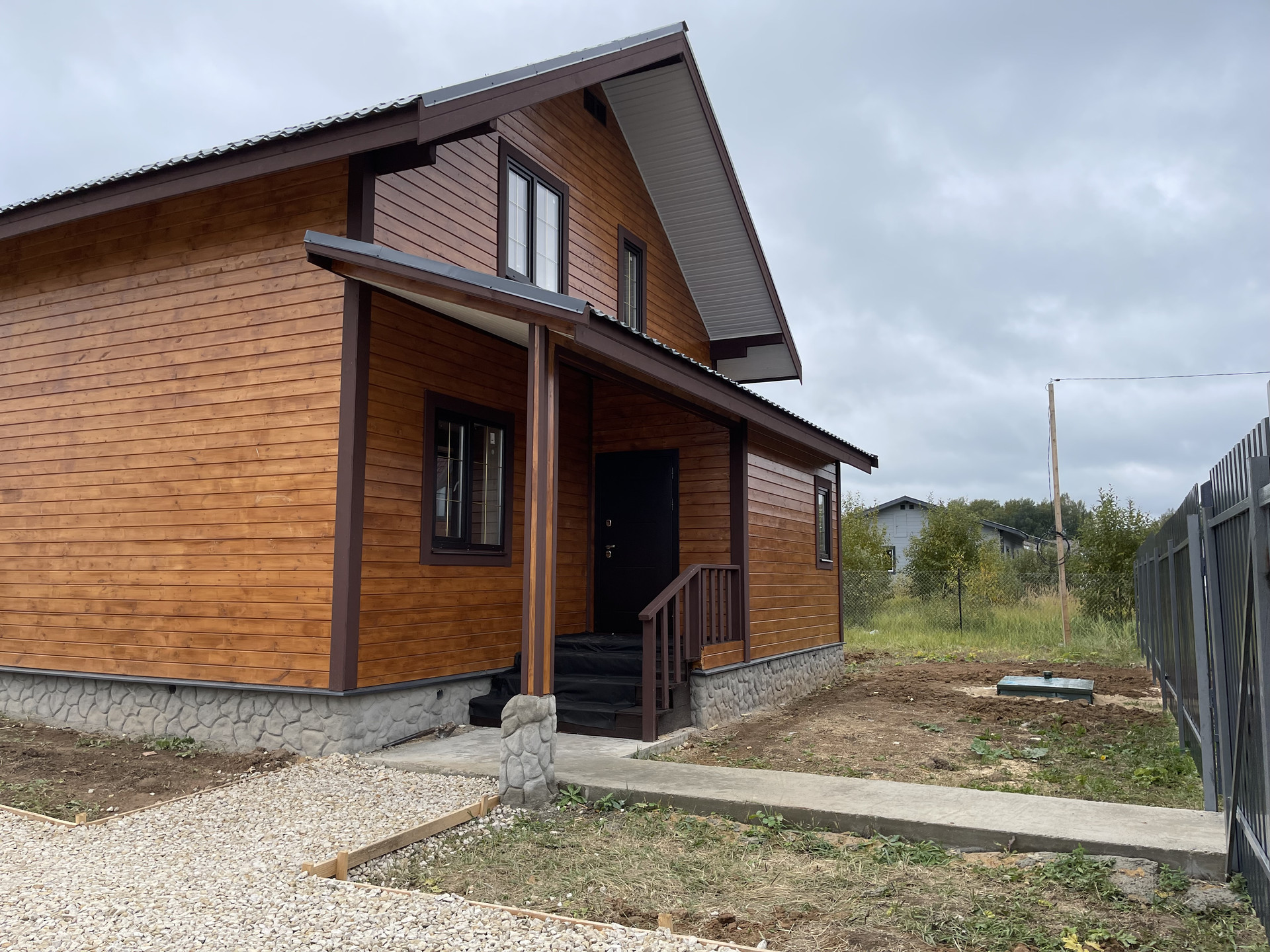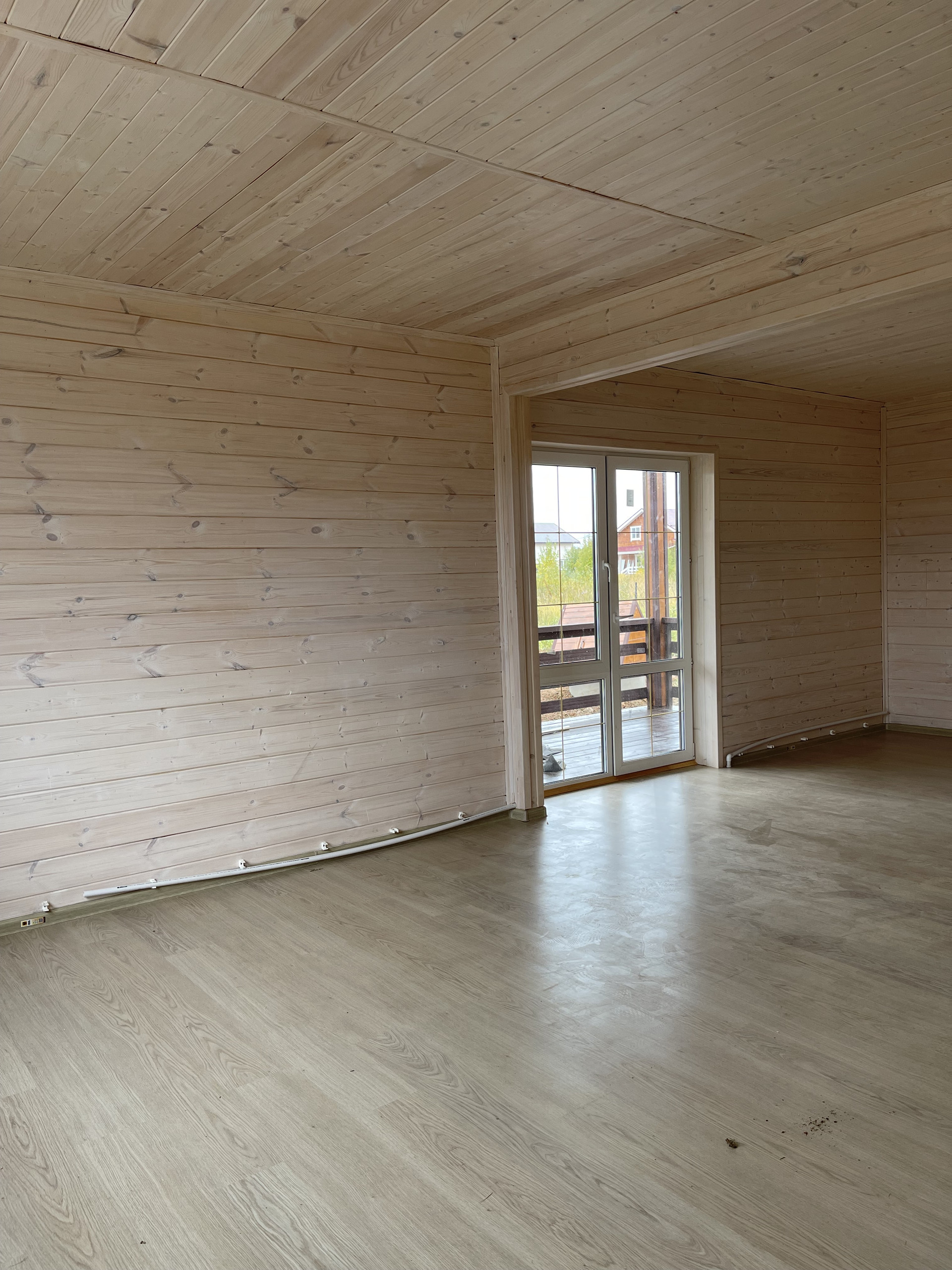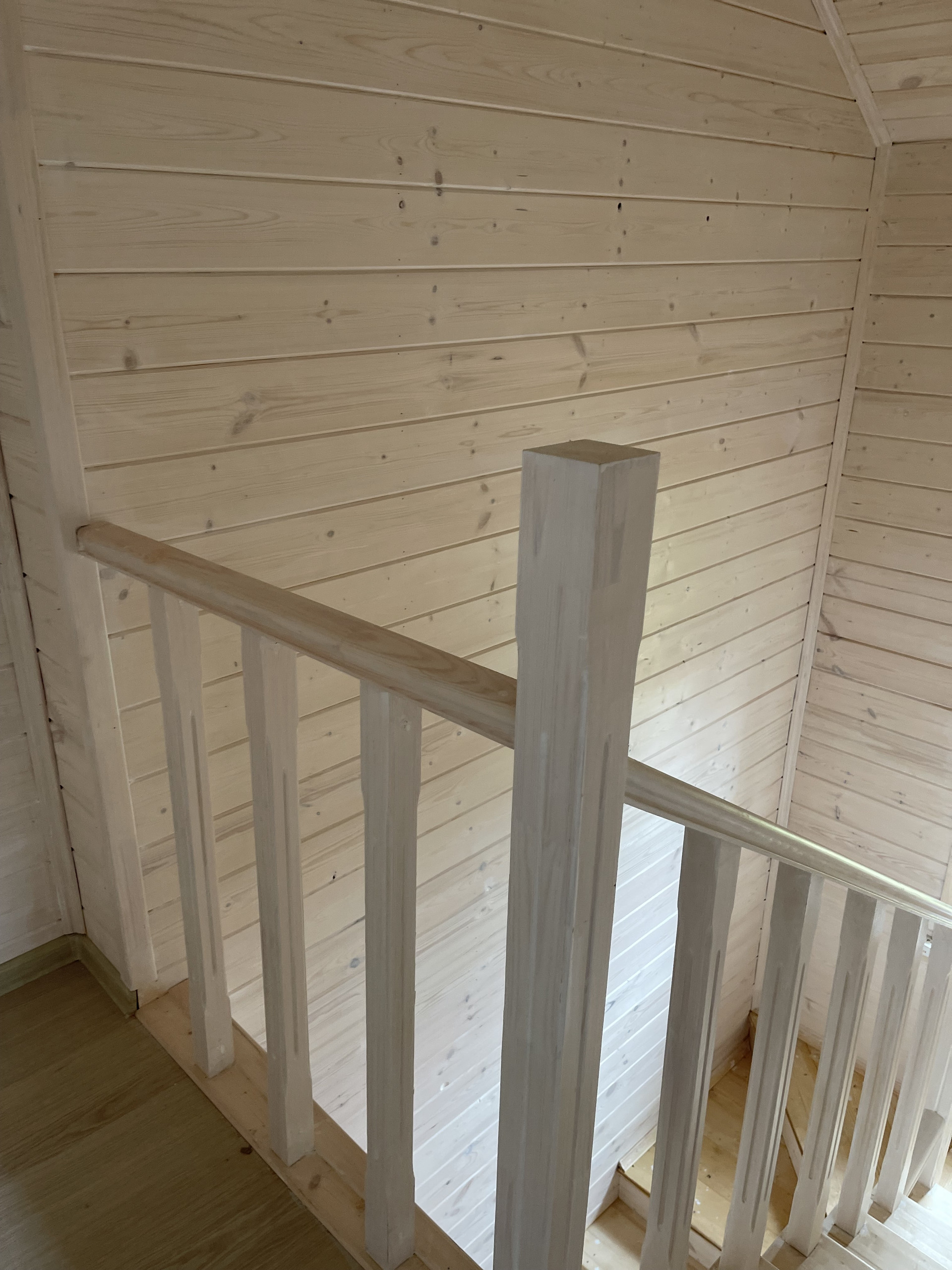 Первый этаж: крыльцо, терраса, прихожая, кухня – гостиная с лестницей на второй этаж и выходом на просторную веранду, с/у полностью оборудован, стены отделаны пластиковыми панелями), отдельная комната. На втором этаже 3 комнаты и холл и санузел.