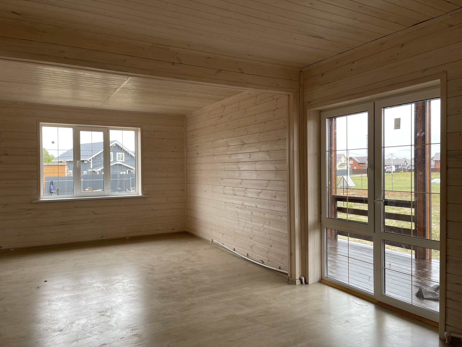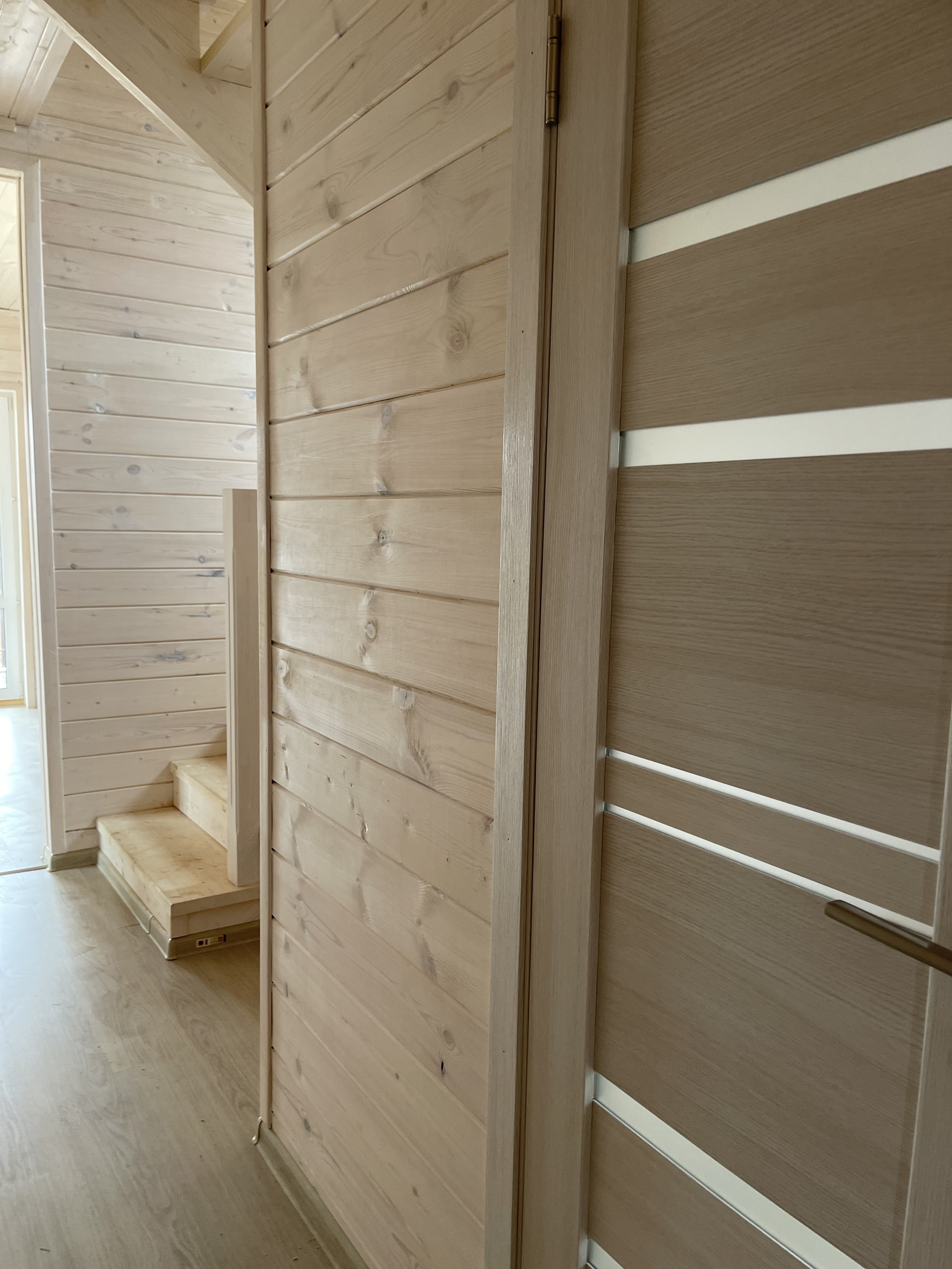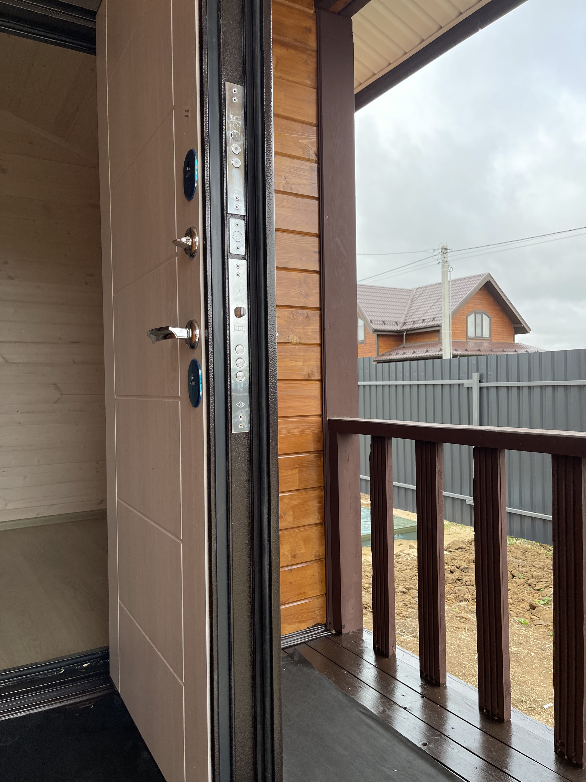 Первый этаж: крыльцо, терраса, прихожая, кухня – гостиная с лестницей на второй этаж и выходом на просторную веранду, с/у полностью оборудован, стены отделаны пластиковыми панелями), отдельная комната. На втором этаже 3 комнаты и холл и санузел.