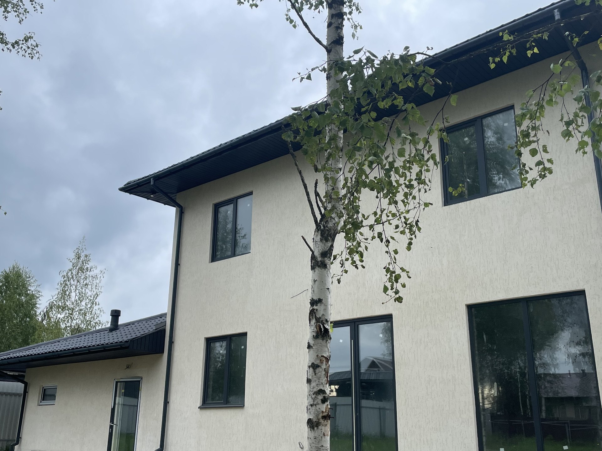 На первом этаже, в зале, понарамное остекление - окна в пол.