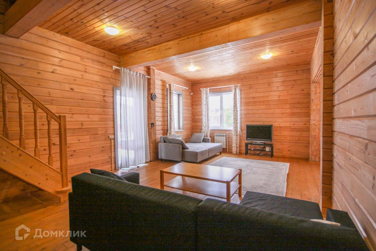 Потолки 1ого этажа 3м, второго (в коньке) 5м. Нужно отметить, что дом практически не использовался, находится в состоянии нового, при этом круглогодично отапливается.