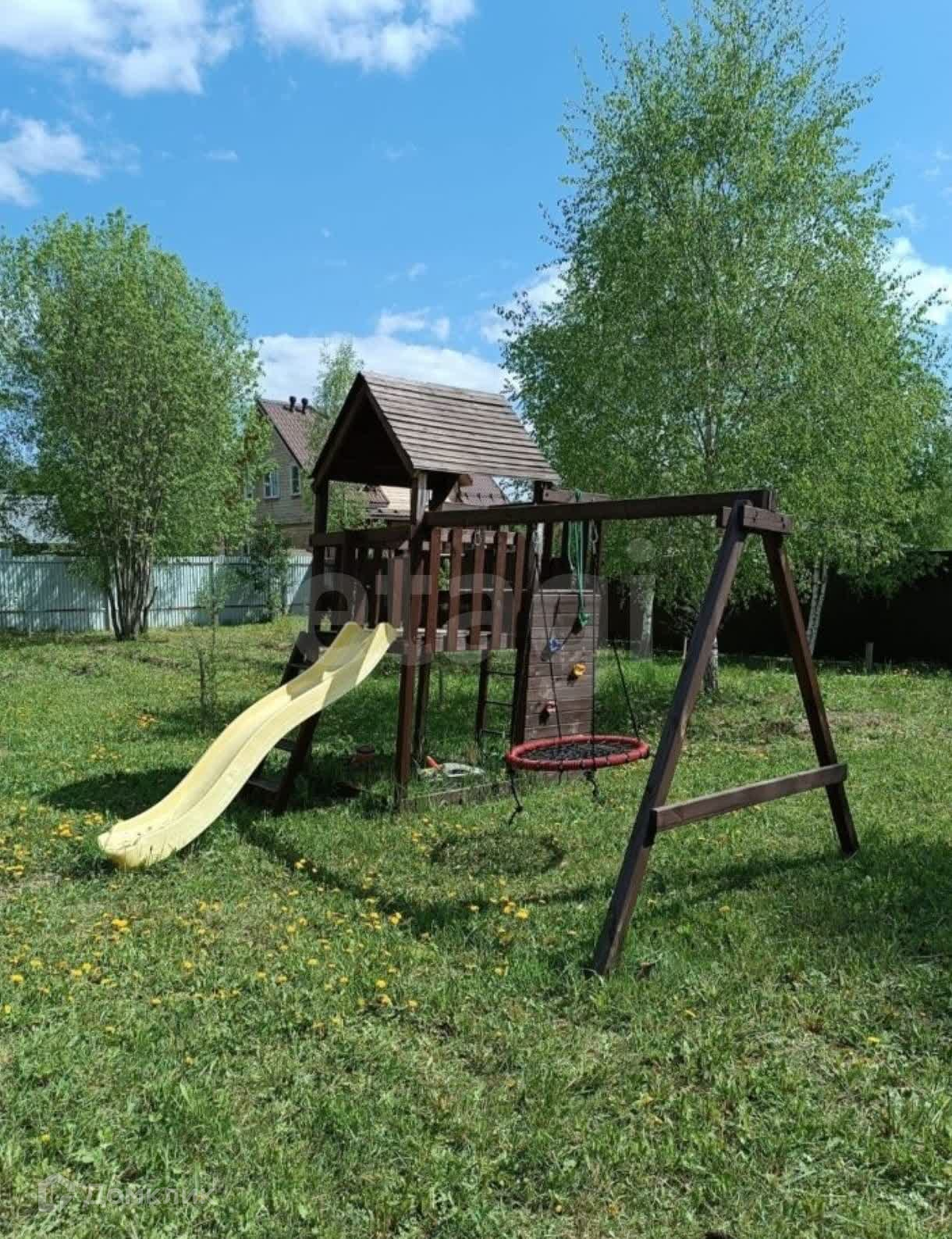 На участке оборудовано место для мангальной зоны. Есть детский игровой спортивный комплекс.