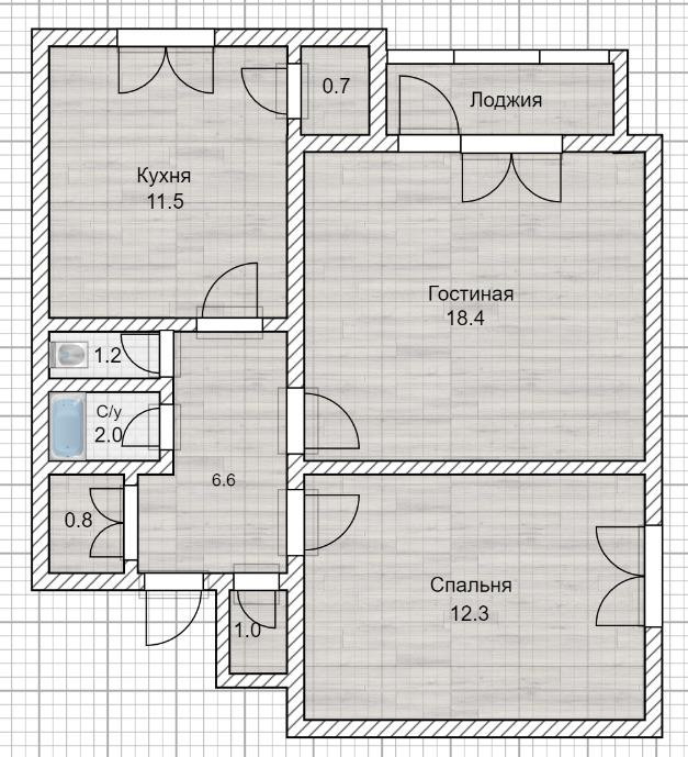 Жилая площадь 18.4 м2