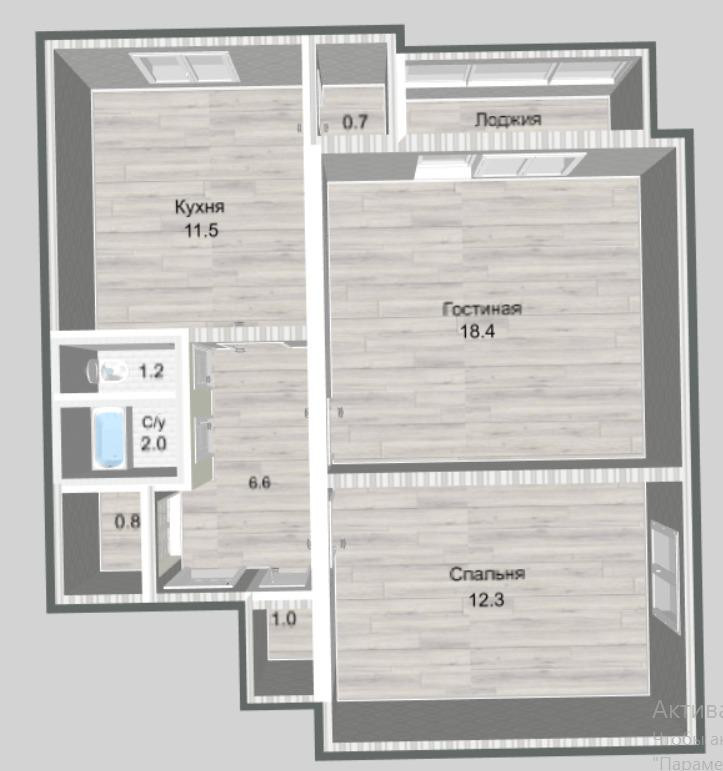 Общая площадь 55.4 м2