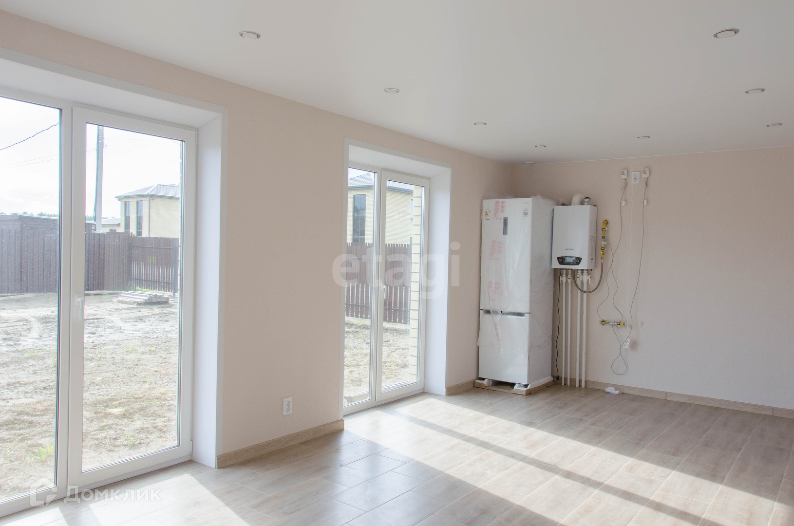Коттедж оборудован газовым котлом и теплыми полами на двух этажах, водоснабжение из скважины.