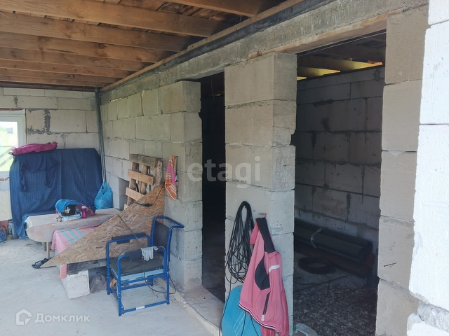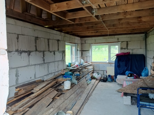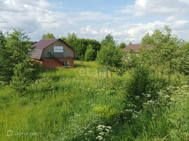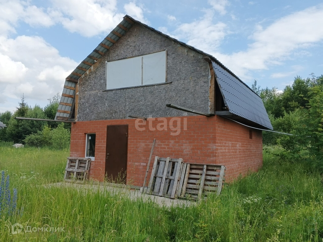 На данный момент на участке находится незавершенный дом, не внесенный в кадастр. Планировка этого дома включает в себя просторную кухню-гостиную, санузел с сауной и две спальни на втором этаже. Дом имеет общую площадь 60 м2, а мансардный этаж немного меньше.