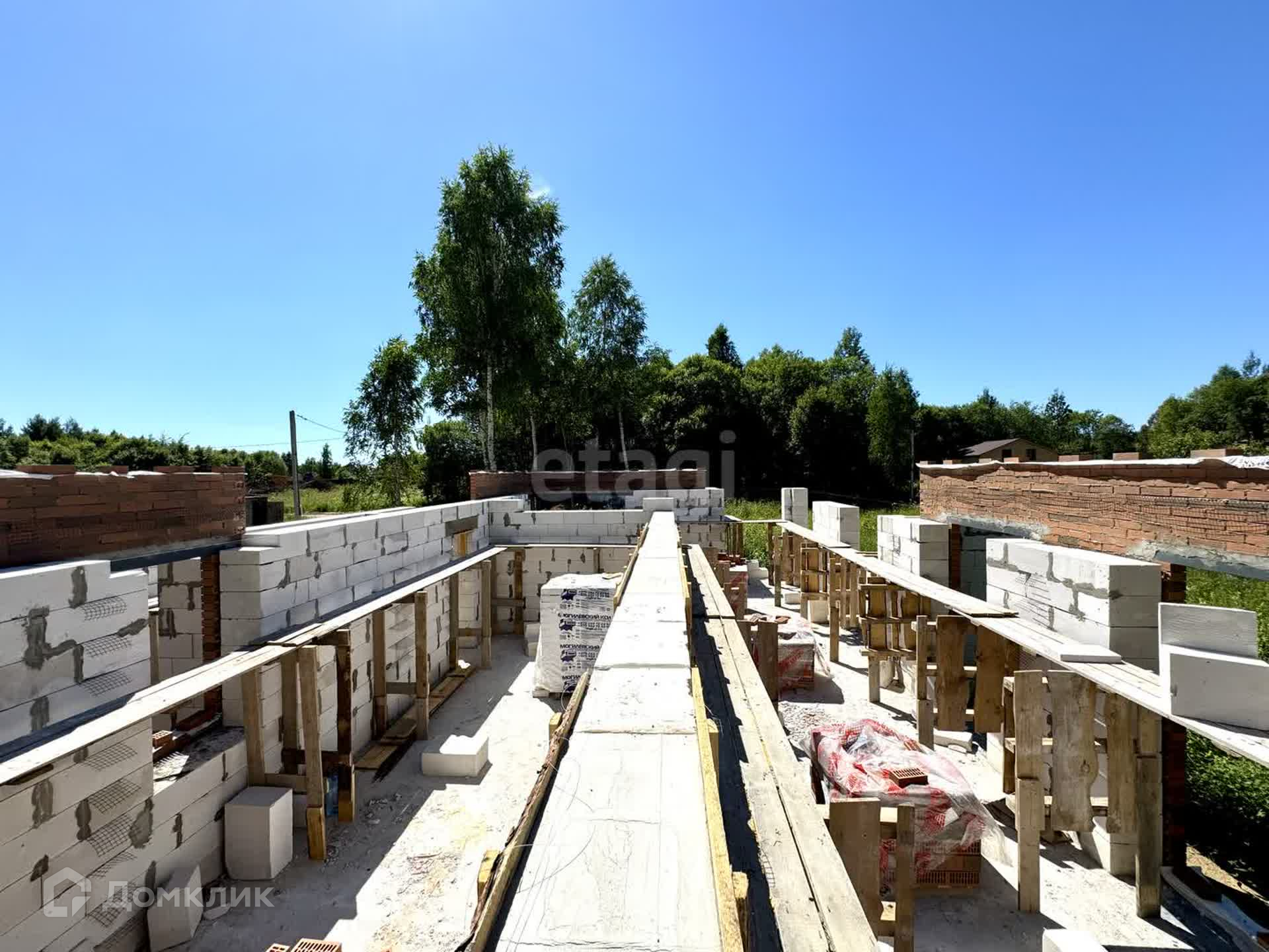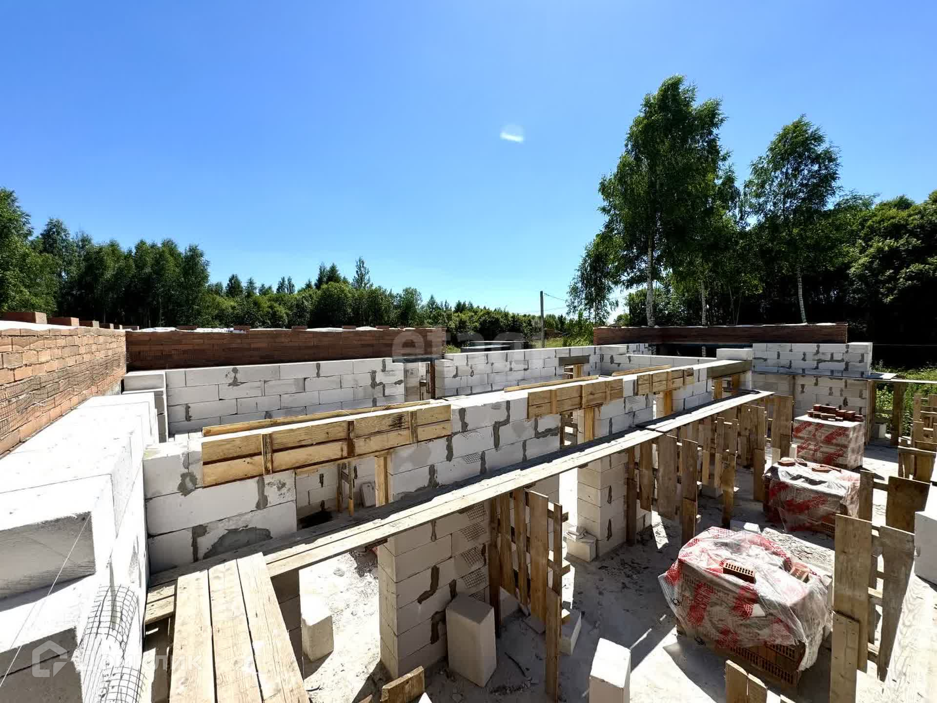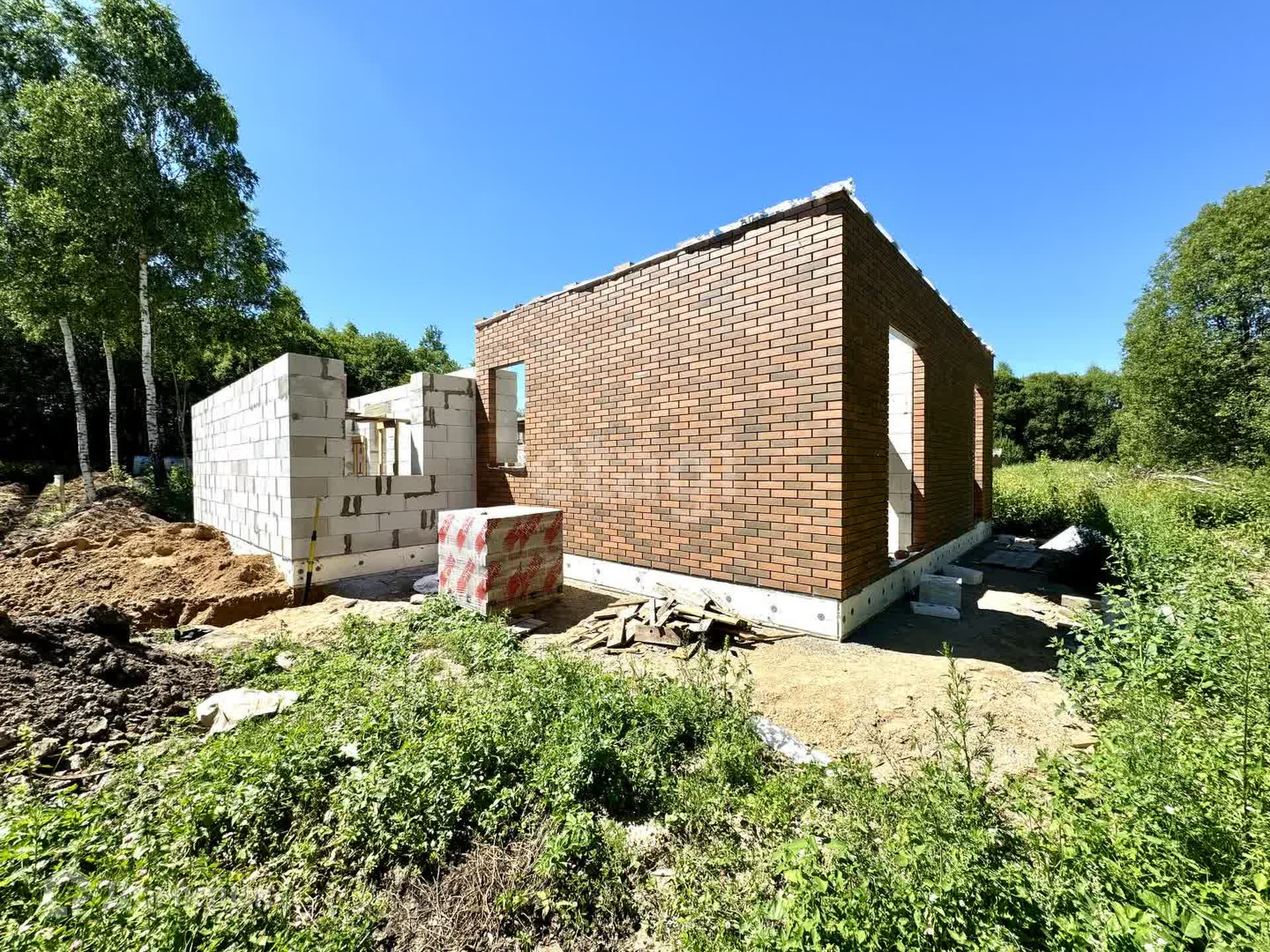 Дом в стадии строительства, будет построен до момента заезжай и живи совсем немного (предчистовая отделка). Вода, отопление и канализация - всё будет заведено. Расположен на ровном участке 15 соток(ИЖС). Будет установлена биостанция, скважина, газ – заведен в дом. Фундаментная плита, стены из блоков d-500, вент зазор 2см, облицовочный кирпич БРАЕР, крыша металочерепица с отливами, окна 3-х камерный стеклопакет 76мм.