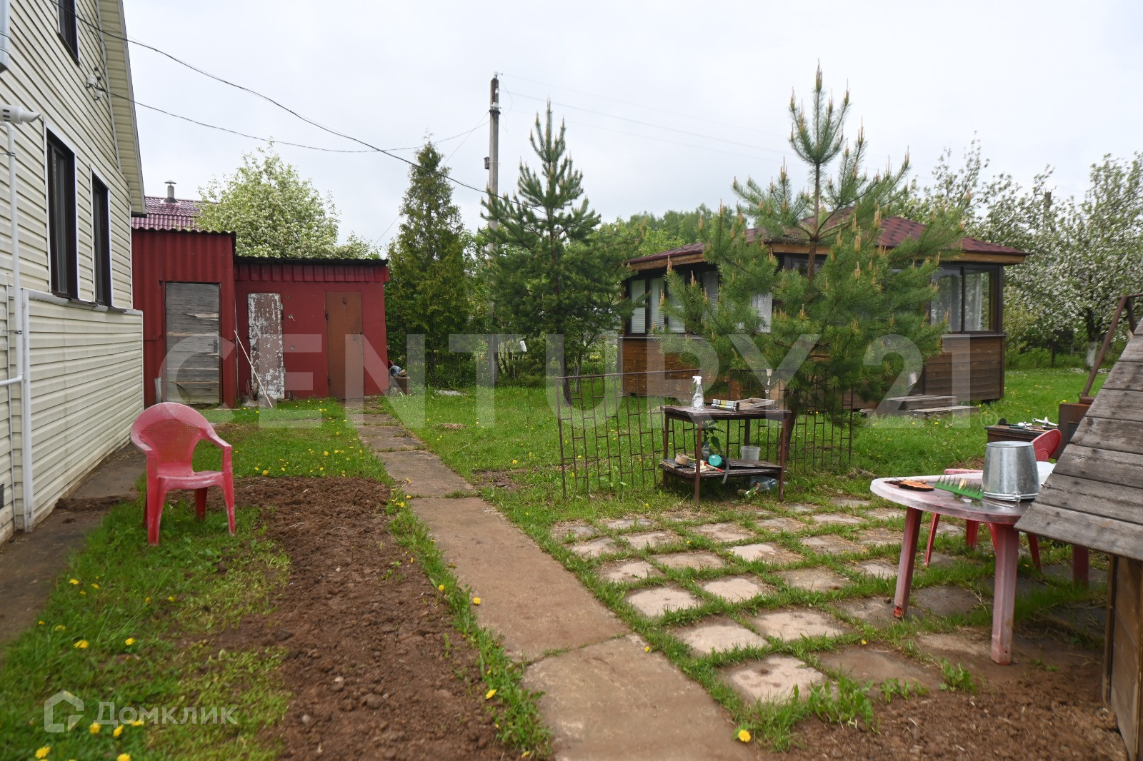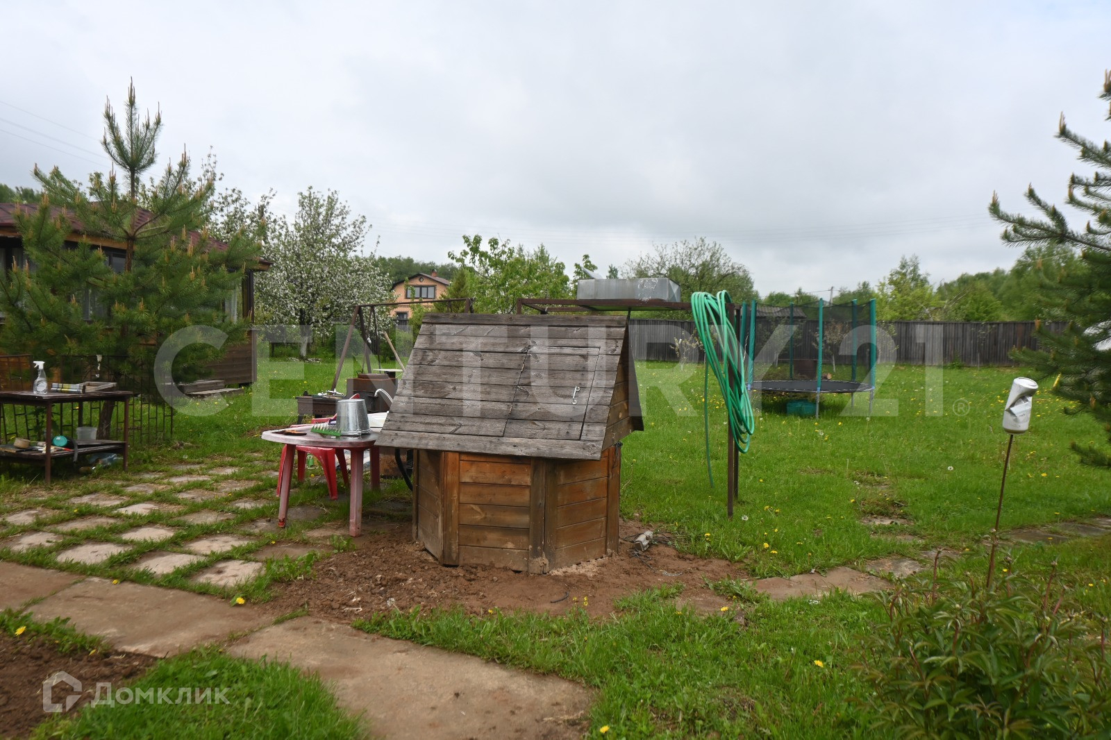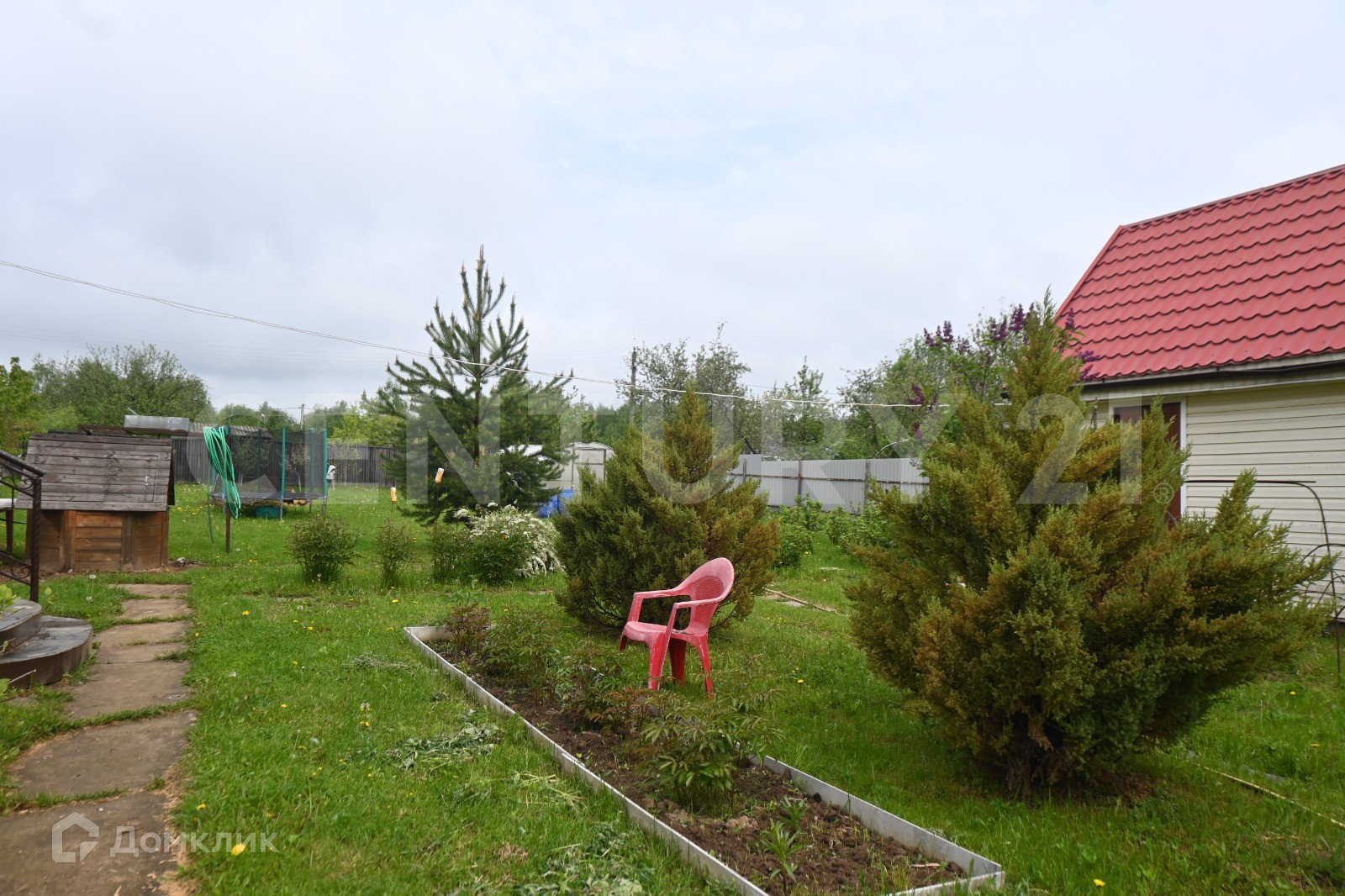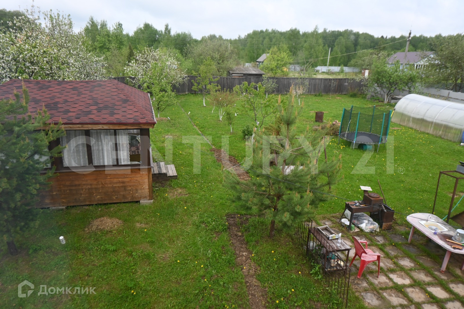 Участок очень красивый и ухоженный, квадратной формы, окруженный с двух сторон лесом: дорожки из камня, аккуратно оформленные грядки, многолетние цветы, кустарники, плодовые деревья. По участку сделан дренаж.
